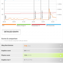 Nel gaming con Real Racing 3 i dettagli sono riprodotti con un alto livello di dettaglio e il framerate è costante, benché non elevato come sui migliori top di gamma. Non ho riscontrato alcun problema di surriscaldamento. Di seguito potete visionare i risultati dei benchmark.