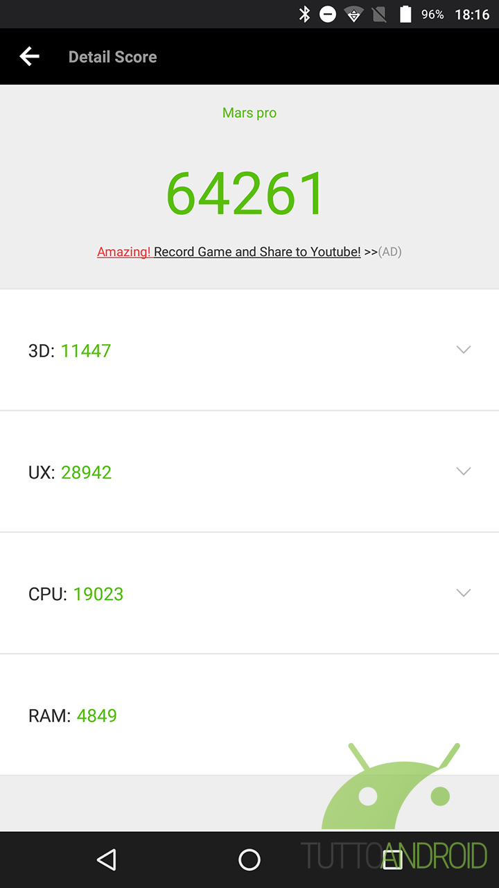 Nella media invece in questa recensione di Vernee Mars Pro il comparto batteria, con una capacità di 3500 mAh. L’autonomia che ne risulta infatti oscilla solitamente tra le 4 ore e mezza e le 5 ore di display attivo in una giornata medio-intensa di utilizzo.