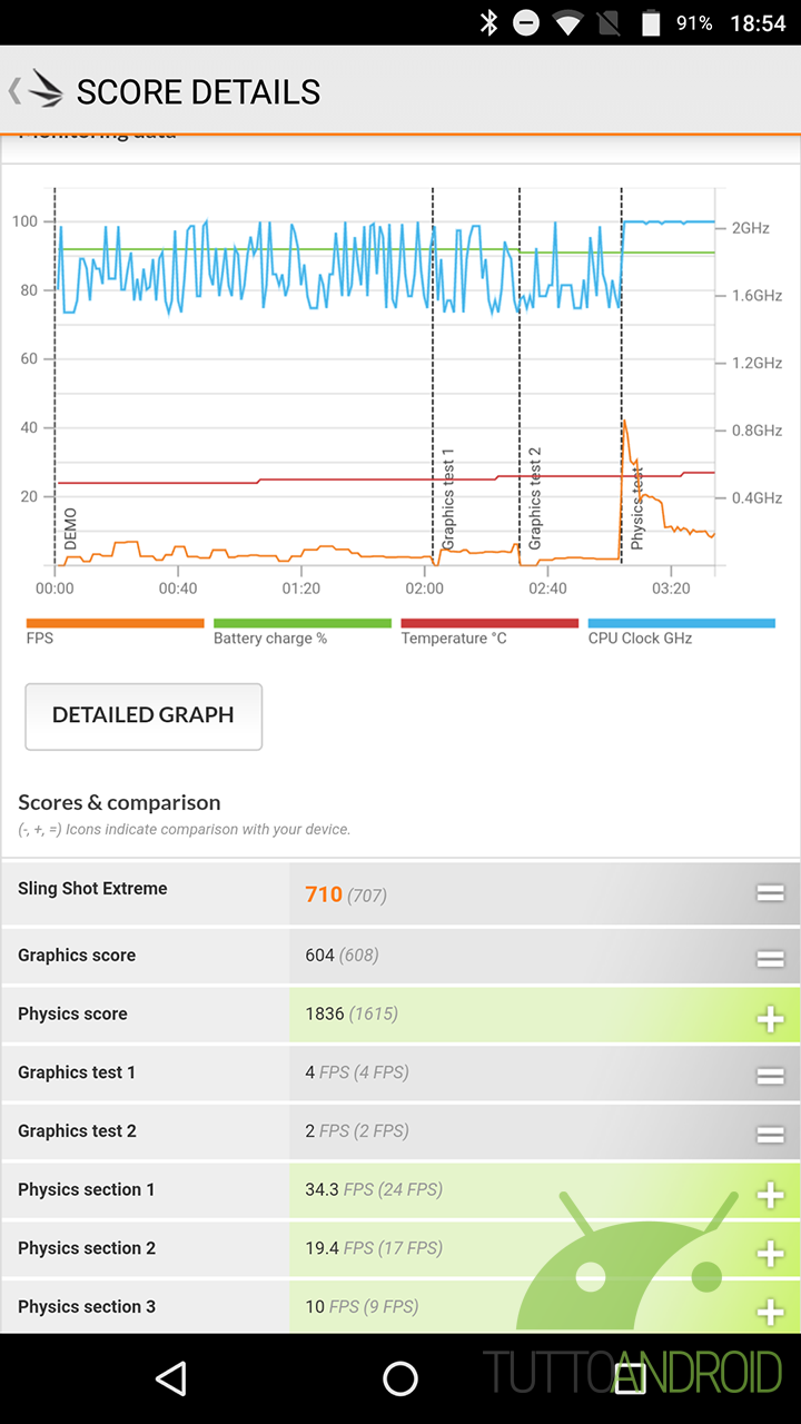 Nel gaming con Real Racing 3 i dettagli sono riprodotti con un alto livello di dettaglio e il framerate è costante, benché non elevato come sui migliori top di gamma. Non ho riscontrato alcun problema di surriscaldamento. Di seguito potete visionare i risultati dei benchmark.