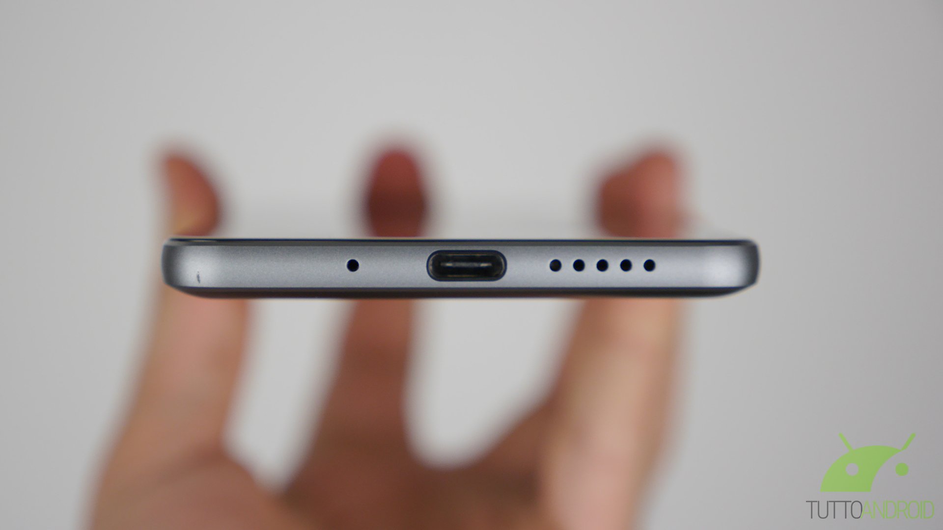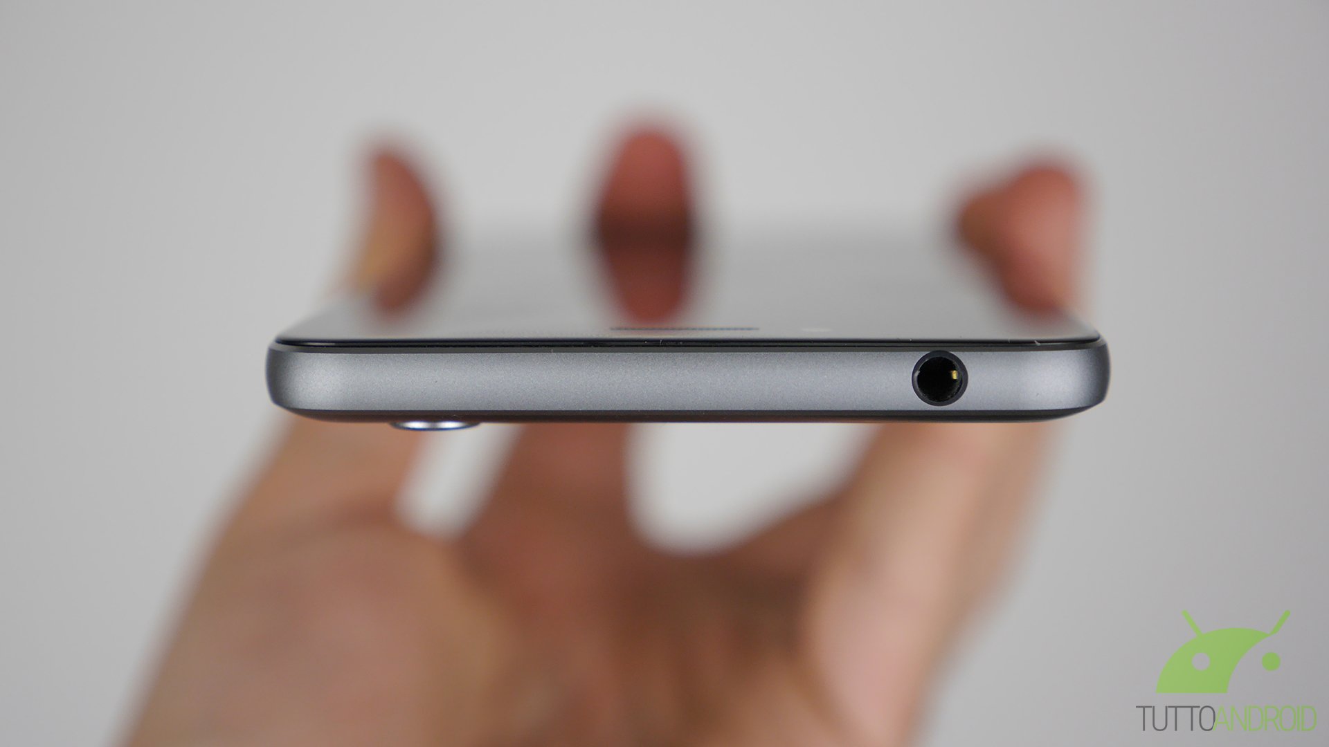 La disposizione degli elementi vede il carrellino delle SIM a sinistra, il jack da 3,5 mm in alto, mentre in basso si fa posto il connettore USB Type-C, affiancato dal microfono principale e dallo speaker mono di sistema. Sul lato destro ci sono invece il pulsante di accensione e il bilanciere del volume, distinguibili perché il primo è riconoscibile da un pattern a cerchi concentrici.