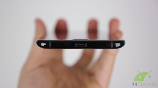 L’unica differenza nella disposizione degli elementi rispetto a Mi 5 è nel connettore audio: il jack da 3,5 mm è assente su Mi 6. In confezione è compreso un adattatore USB Type-C a jack, ma ciò potrebbe non essere la soluzione preferita da molti utenti. In compenso sulla parte alta c’è un trasmettitore ad infrarossi.