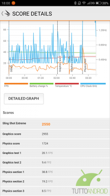 Nel gaming con Real Racing 3 il framerate è sempre elevato e costante, con i dettagli ambientali riprodotti al massimo. Quando messo sotto stress per periodi prolungati la parte intorno alla fotocamera va a scaldare leggermente, senza però diventare mai particolarmente fastidioso da tenere in mano. Di seguito potete visione i risultati dei benchmark.