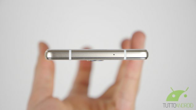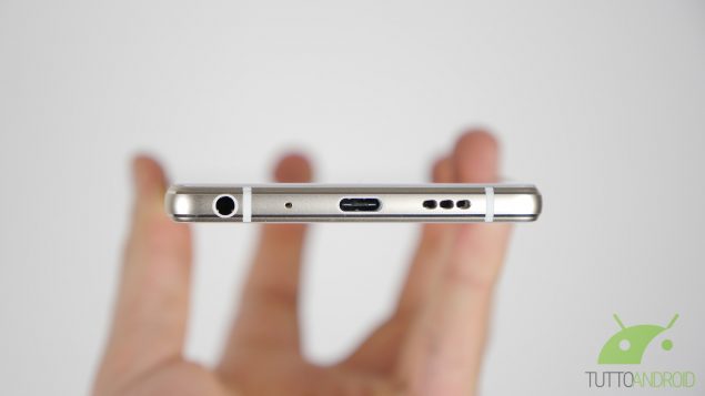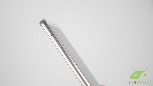 Il pulsante di accensione è zigrinato e si trova sotto al bilanciere del volume, sulla destra, mentre a sinistra è presente solo lo slot per le SIM. In alto trova posto il microfono secondario, mentre sul fondo ci sono il micorofono principale, lo speaker singolo e il connettore USB Type-C.