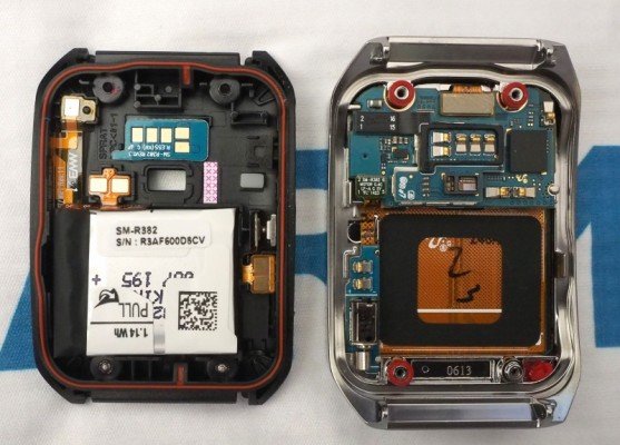 Le operazioni di disassemblaggio di questi due smartwatch si sono ovviamente concluse con il mostrare qual è il contenuto di LG G Watch e Samsung Gear Live. E’ facile intuire, senza bisogno di andare ad aprire uno dei due dispositivi, come lo spazio al loro interno sia estremamente ridotto e l’ingegnerizzazione dei componenti elettronici sia invece elevata. Qui di seguito trovate le due foto dei due smartwatch che mostrano il contenuto interno.