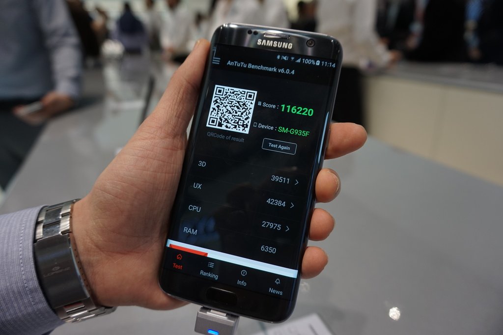 AnTuTu Benchmark è, senza dubbio, una delle applicazioni più utilizzate per effettuare i test benchmark. Il Galaxy S7 Edge si è comportato molto bene anche in questa occasione in quanto ha totalizzato 116.220 punti. Il punteggio è molto elevato, nonostante sia più basso rispetto a quello ottenuto dal primo smartphone con processore Snapdragon 820. Ricordiamo che anche il Galaxy S7 Edge sarà disponibile con il processore Snapdragon 820 e non escludiamo che il punteggio potrà essere più elevato rispetto a quello ottenuto con la versione con processore Exynos 8890.