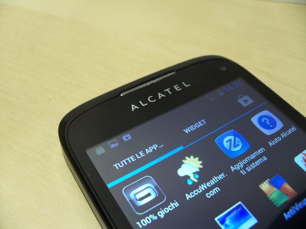 Alcatel non ha davvero pensato di lasciare agli utenti la scelta delle applicazioni poichè ne ha preinstallato un numero quasi imbarazzante: sono ben 40 le applicazioni preinstallate. Tra queste troviamo alcune interessanti ed altre meno: Aiuto Alcatel consente di leggere le FAQ o di mettersi in contatto col supporto ufficiale; Androlib Wallpapers mette a disposizione un grande numero di sfondi gratuiti; AVG Antivirus offre protezione dai malware; Asphalt 6 e Assasin’s Creed sono due giochi sufficientemente famosi; Barcode scanner consente di leggere i codici a barre; Bebbled è un puzzle game; BioWallet Signature permette di creare una “cassaforte” sbloccabile con dati biometrici personali; BlockBreaker 3 è un gioco in stile Breakout; Cloud Backup e Condivisione Multimedia sono rispettivamente per salvare i propri dati e per condividere sulla propria rete i file multimediali; Ringdroid consente di creare la propria suoneria partendo da un file MP3; Sweet Dreams consente di impostare orari specifici per mandare il telefono in modalità aereo o uscirvi e Tasks consente di creare una lista di compiti da eseguire. Le applicazioni sono molte di più, ma ci limitiamo a queste.