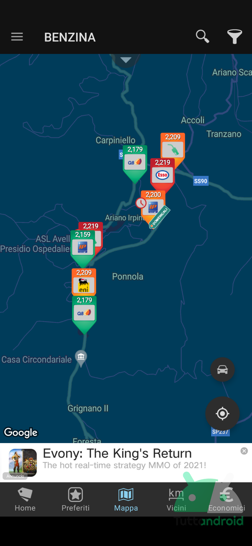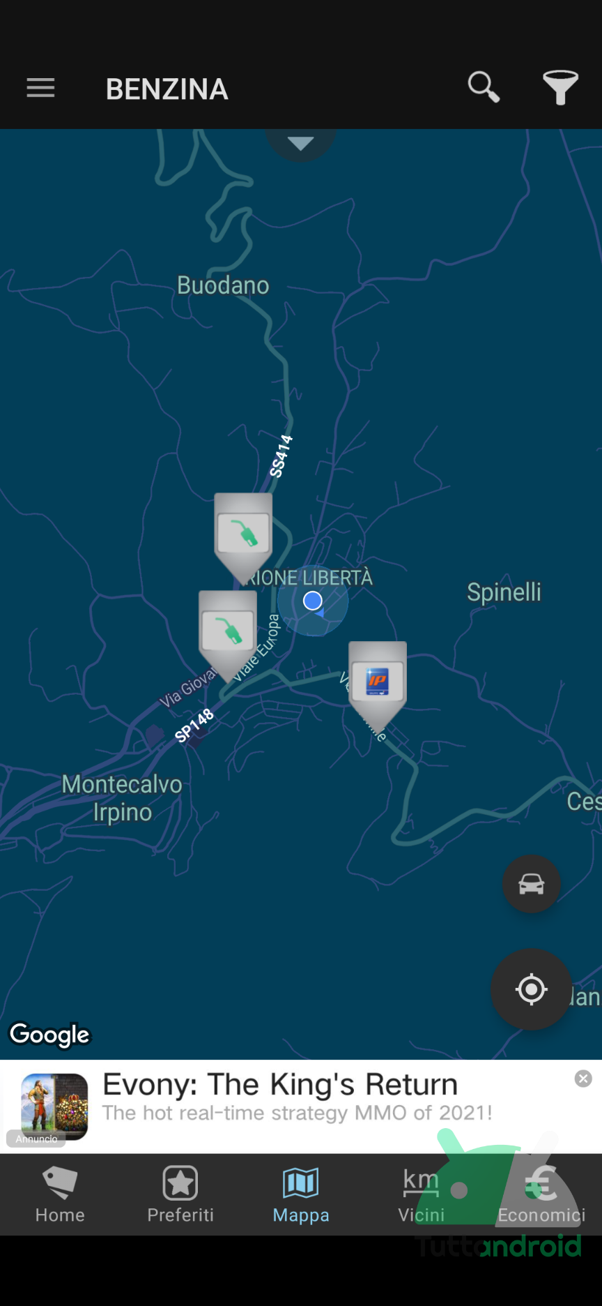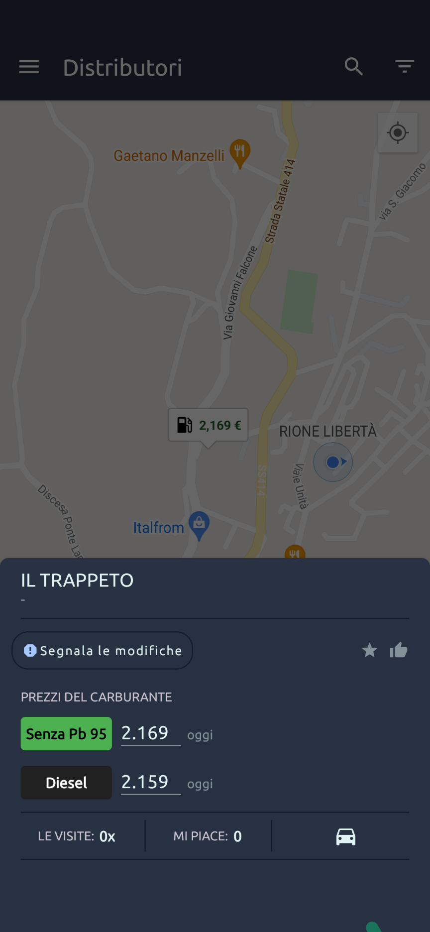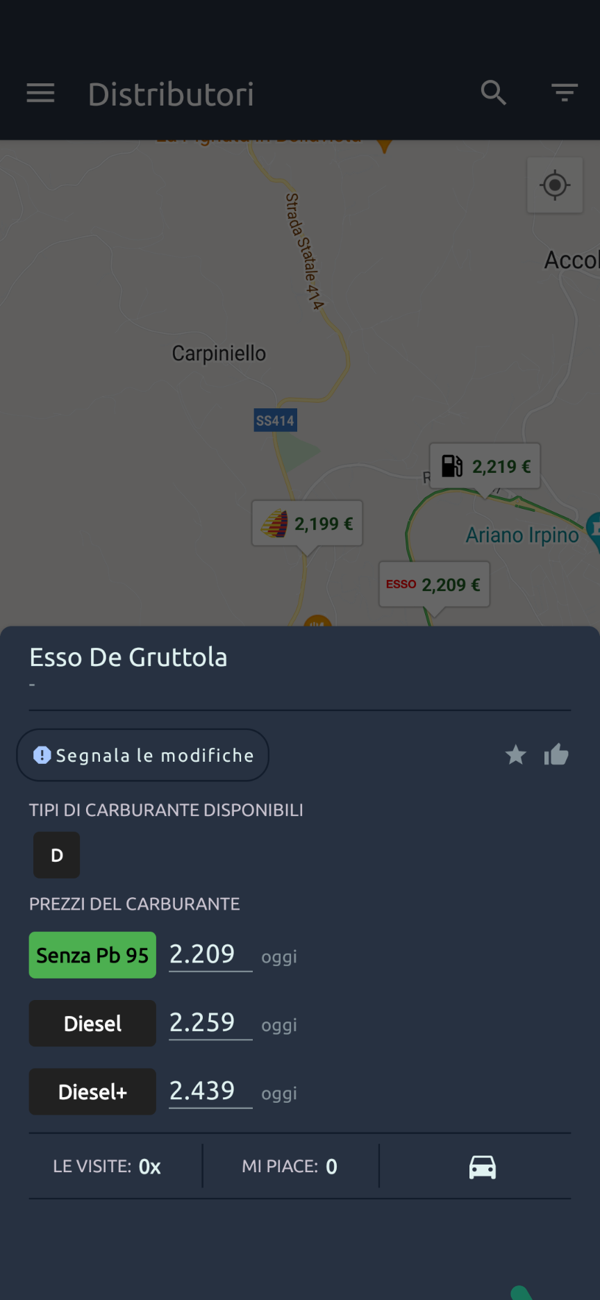 Prezzi Benzina – GPL e Metano permette di trovare il distributore di carburante più economico nei dintorni. Basta selezionare il carburante tra benzina, diesel, metano e GPL e dare uno sguardo alla mappa basata sulla posizione attuale (serve concedere l’accesso alla posizione, ovviamente) per avere un colpo d’occhio della situazione attuale.