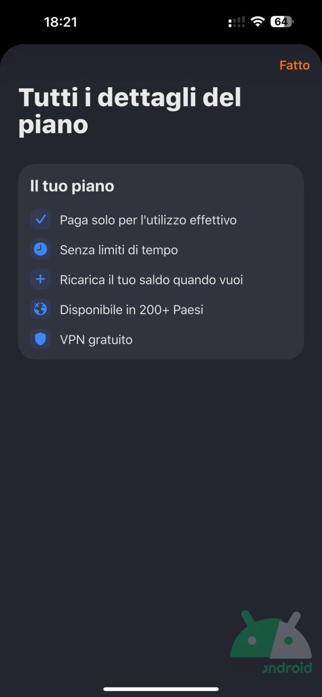 - semplicità d'acquisto del piano dati;