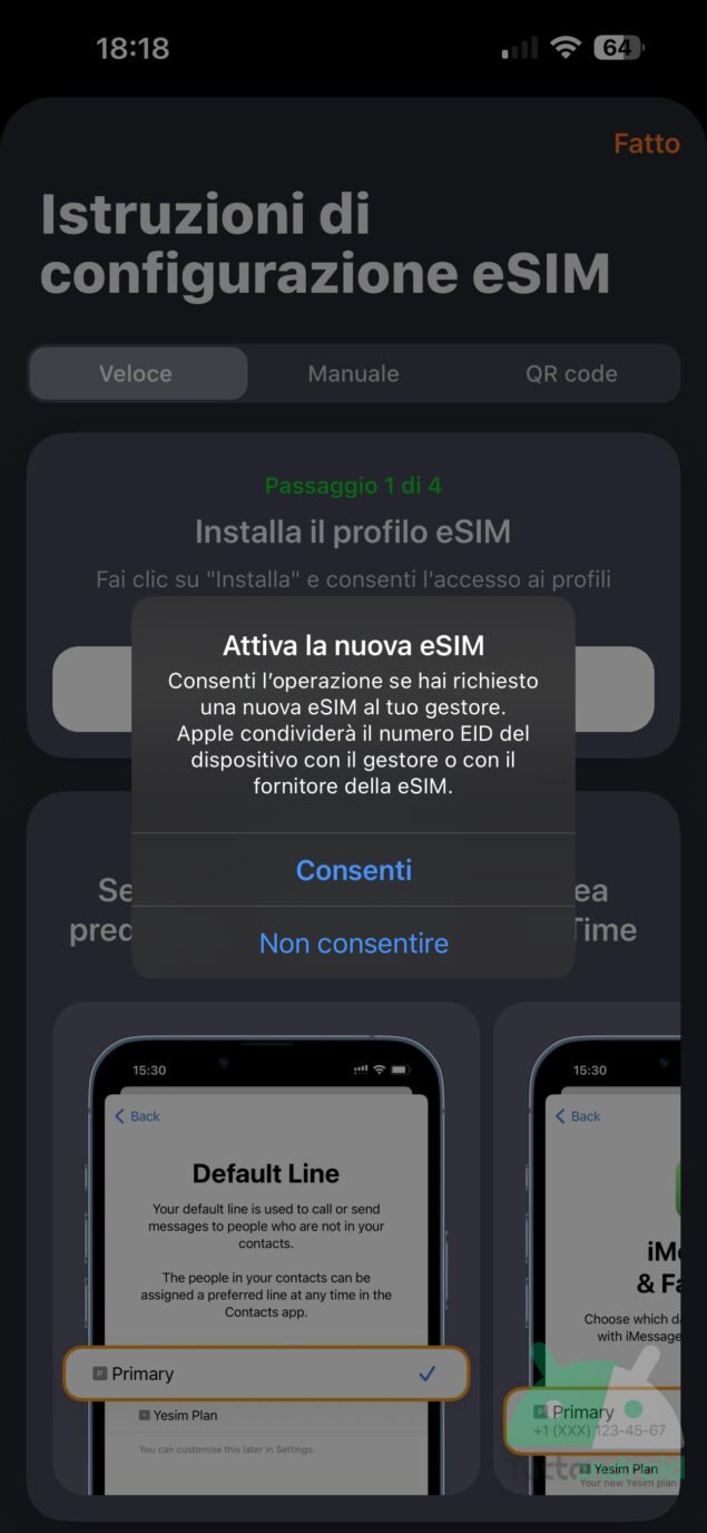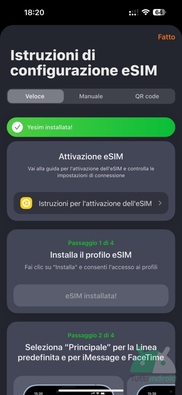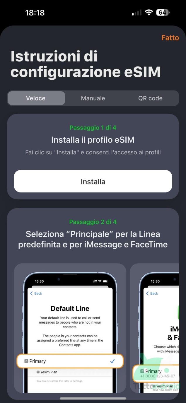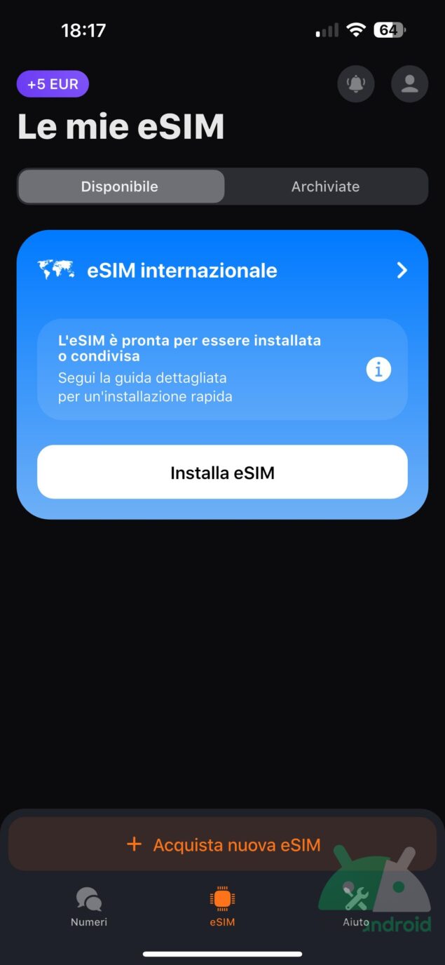 - facilità di installazione della eSIM;