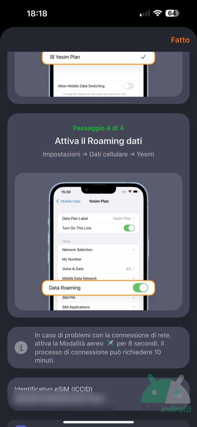 Abbiamo portato a termine queste poche operazioni alcune settimane prima della partenza perché Yesim permette di gestire la eSIM a proprio piacimento in tutto e per tutto e quindi non ne richiede l’installazione e soprattutto l’attivazione immediate, perciò è possibile prepararla anticipatamente per poi averla pronta e metterla in funzione solo al momento opportuno, che sia a ridosso della partenza o direttamente in seguito all’uscita dai confini nazionali. E fare tutto questo ci ha rubato sì e no un paio di minuti perché l’applicazione e la procedura guidata di Yesim funzionano estremamente bene, sono scorrevoli e soprattutto sono presentati con un aspetto grafico chiaro e gradevole. Perciò una volta atterrati nel paese estero abbiamo solo dovuto attivare la connessione dati dello smartphone tramite la eSIM di Yesim, proprio come si fa con l’operatore italiano in Italia, per iniziare a navigare normalmente.