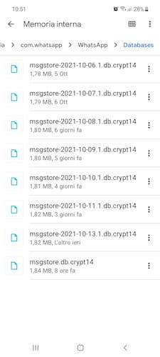 Iniziamo dall’operazione che abbiamo definito meno semplice rispetto a quella che prevede l’utilizzo di Google Drive. Ecco dunque come recuperare i messaggi WhatsApp cancellati dal backup in locale eseguito in automatico dall’app: