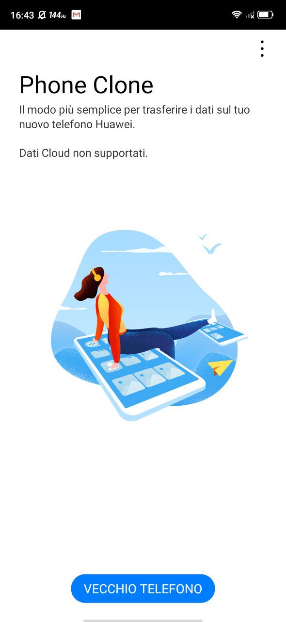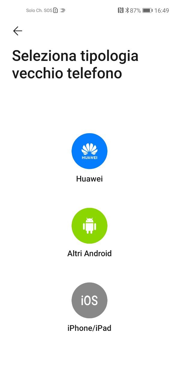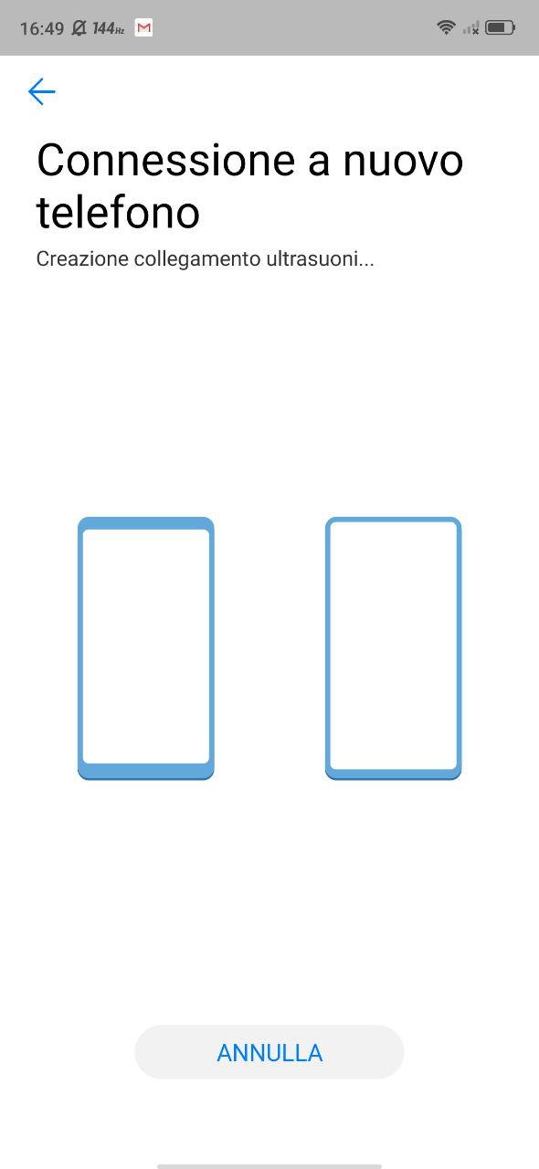 - Sul vecchio smartphone premete il pulsante “vecchio telefono” mentre sul nuovo smartphone Huawei cliccate “Nuovo telefono (ricevi i dati)”;