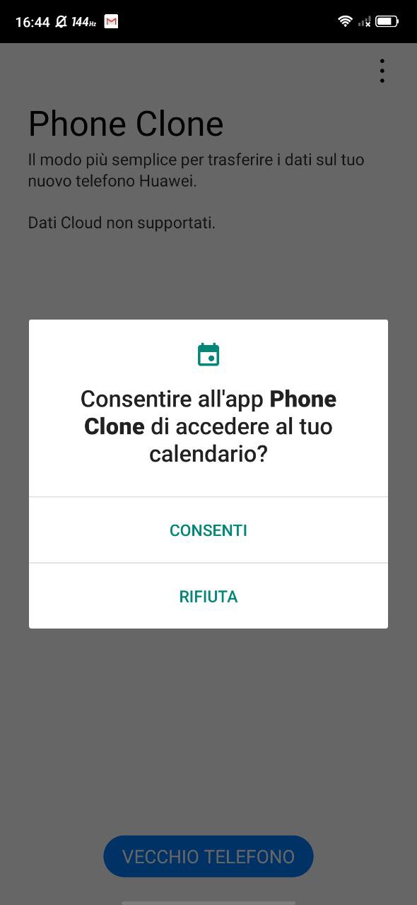 - Sul entrambi gli smartphone vi verrà richiesto di consentire all’app Phone Clone di accedere a diversi dati, confermateli tutti;