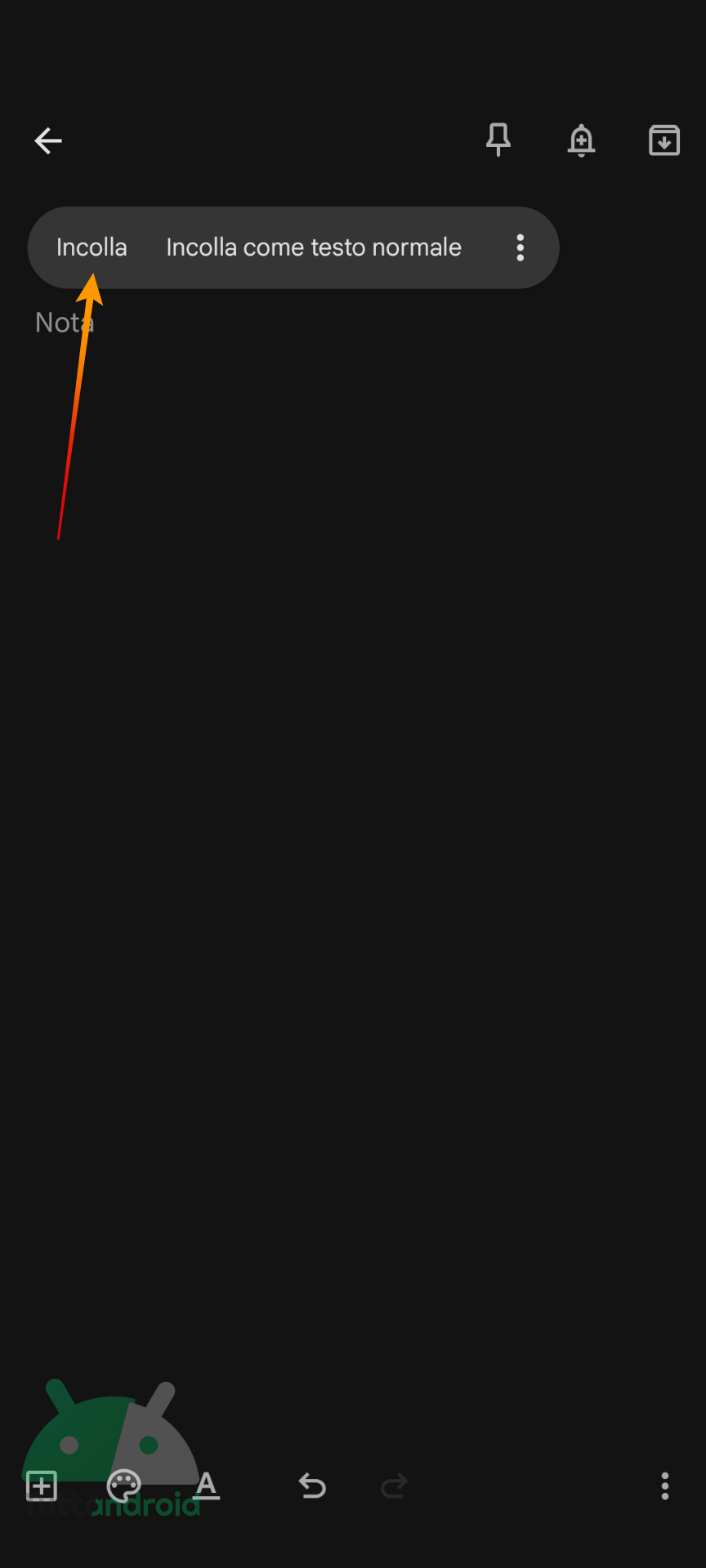 - Aprite l’applicazione per le note e gli appunti che usate di solito, selezionate quelli da passare nell’altro smartphone, selezionate Copia, aprite Google Keep, premete sul tastino + in basso a destra, selezionate il tipo di appunto o nota e qui premete Incolla (in alternativa, potete utilizzare il tasto condividi della vostra applicazione e nel menù di condivisione selezionare Google Keep, così da importarli in maniera più veloce);