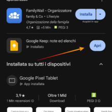 - Scaricate Google Keep dal Google Play Store all’interno del vostro vecchio smartphone o dispositivo principale;
