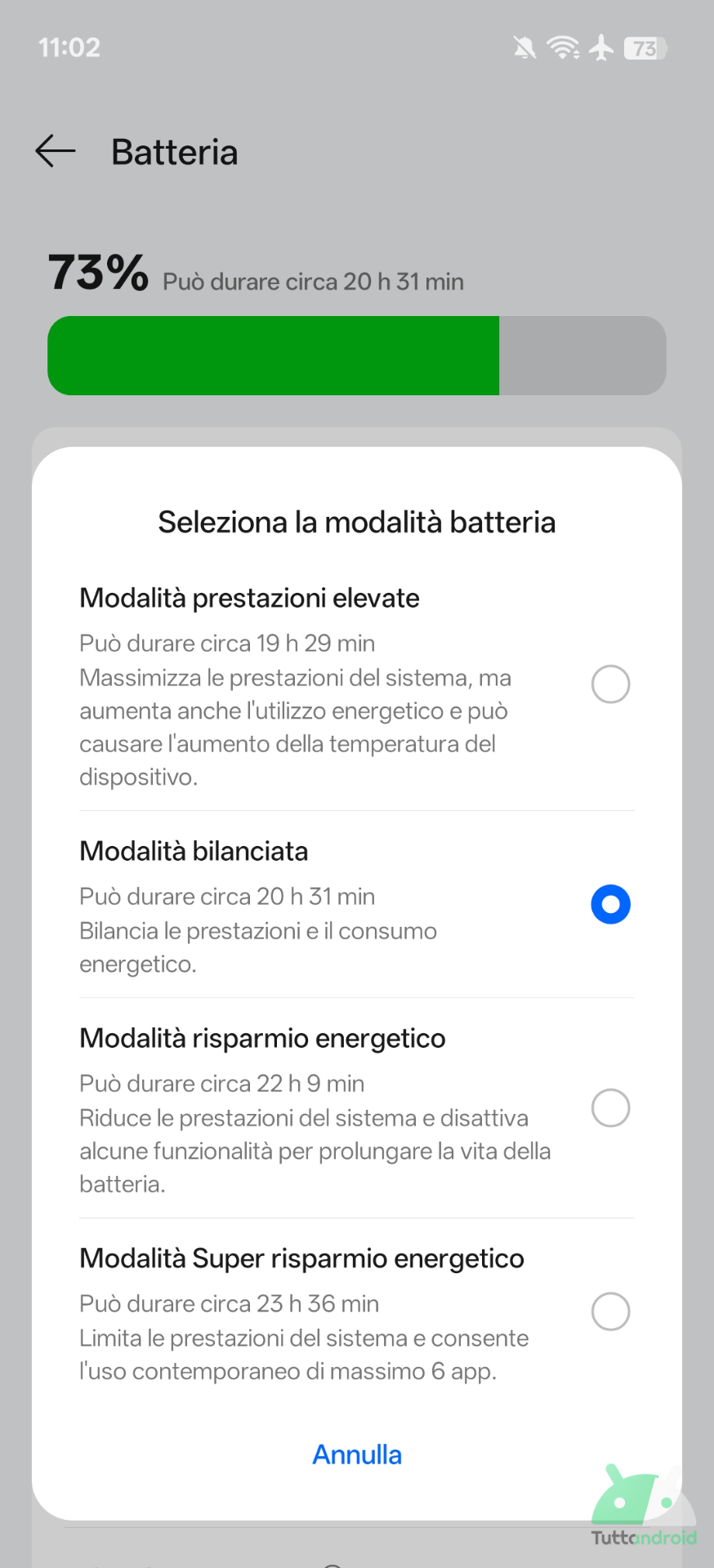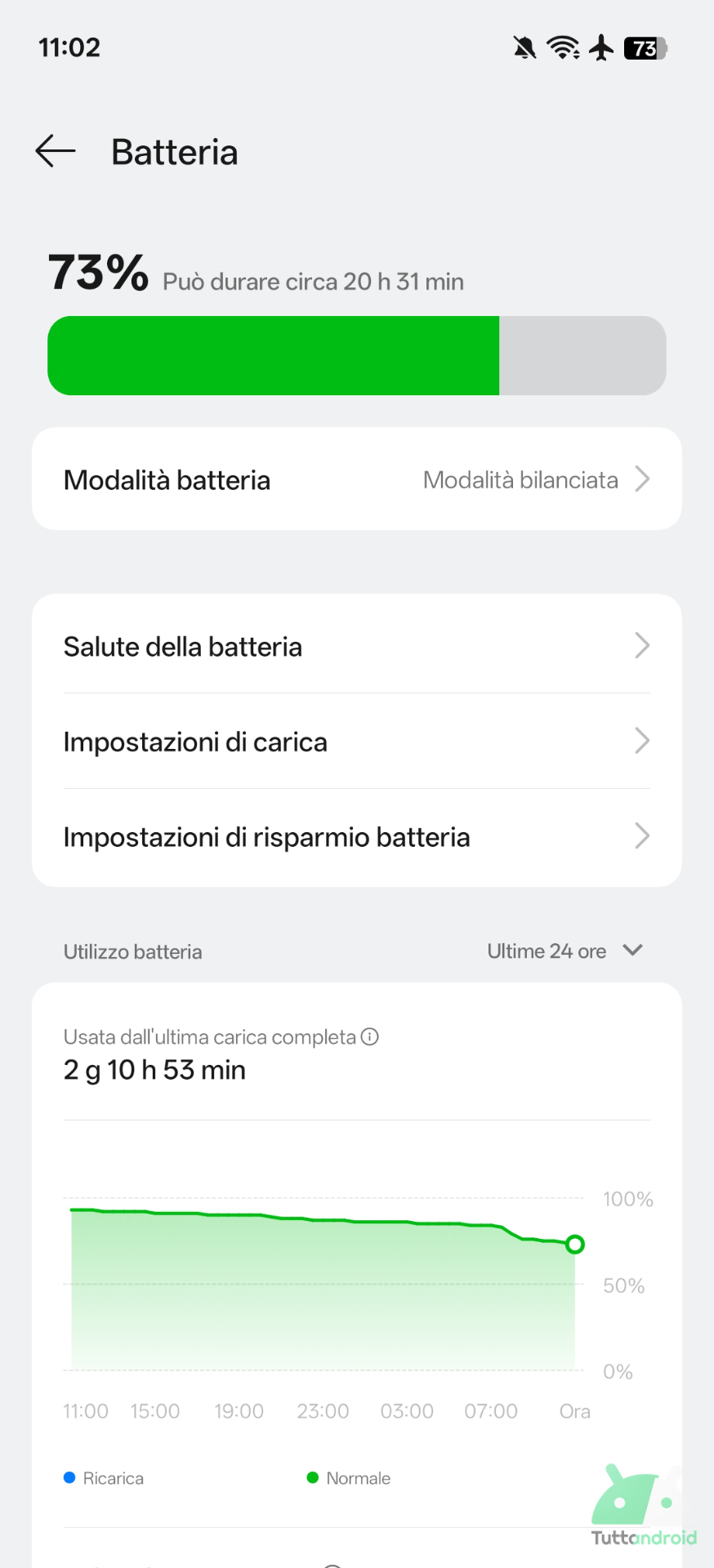 Con una batteria da 6.500 mAh, l’OPPO A6 Pro 5G si pone ai vertici della categoria per autonomia e soprattutto è un passo in avanti rispetto alla batteria di A5 Pro 5G che si fermava ai 5800 mAh. Nella pratica, questo significa poter affrontare almeno due giornate intensive senza alcuna ansia riguardo alla durata del device. Durante i nostri test giornalieri, con uso misto tra streaming video, gaming moderato, chiamate e navigazione web, il telefono è riuscito ad arrivare quasi alle 48 ore di utilizzo, senza dover impostare alcun tipo di risparmio energetico.