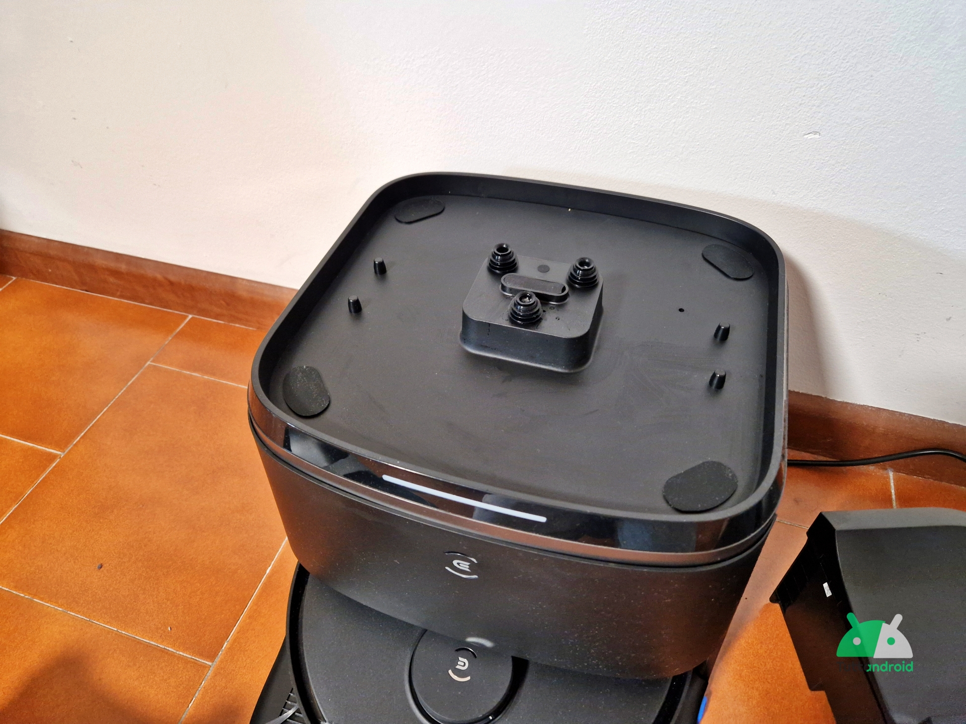 ECOVACS non fa eccezione dal punto di vista delle funzionalità, ma è riuscita a inserire tutte queste caratteristiche in poco spazio, molto meno rispetto a quanto ci avevano abituati i designer negli ultimi mesi (qui sopra potete vederlo a confronto con un top di gamma della concorrenza). La base di ricarica di DEEBOT T30 OMNI è invece decisamente compatta, grazie ad alcune scelte intelligenti. I due contenitori per acqua sporca e pulita sono posizionati direttamente sopra la base, senza coperchi da aprire e possono essere rimossi alzandolo di pochi centimetri.