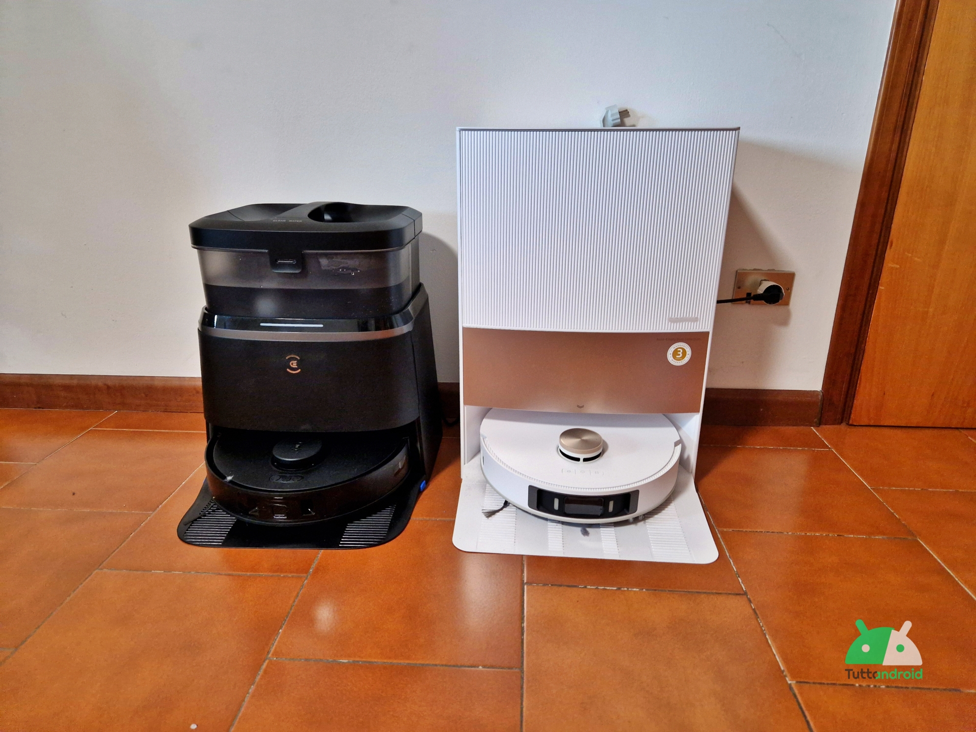 ECOVACS non fa eccezione dal punto di vista delle funzionalità, ma è riuscita a inserire tutte queste caratteristiche in poco spazio, molto meno rispetto a quanto ci avevano abituati i designer negli ultimi mesi (qui sopra potete vederlo a confronto con un top di gamma della concorrenza). La base di ricarica di DEEBOT T30 OMNI è invece decisamente compatta, grazie ad alcune scelte intelligenti. I due contenitori per acqua sporca e pulita sono posizionati direttamente sopra la base, senza coperchi da aprire e possono essere rimossi alzandolo di pochi centimetri.