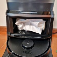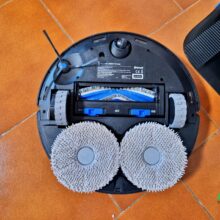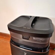 Tutto questo non comporta alcuna rinuncia, visto che la base è comunque completa di ogni funzionalità. Si parte, ovviamente, dalla ricarica della batteria interna del robottino, passando per l’aspirazione della polvere raccolta, convogliata in un apposito sacchetto, passando per la ricarica del serbatoio interno utilizzando l’apposita tanica d’acqua pulita. Quest’ultima viene utilizzata anche per il lavaggio dei moci rotanti, che avviene scaldando l’acqua fino a 70 gradi, per una rimozione ancora più accurata di grasso e sporco.
