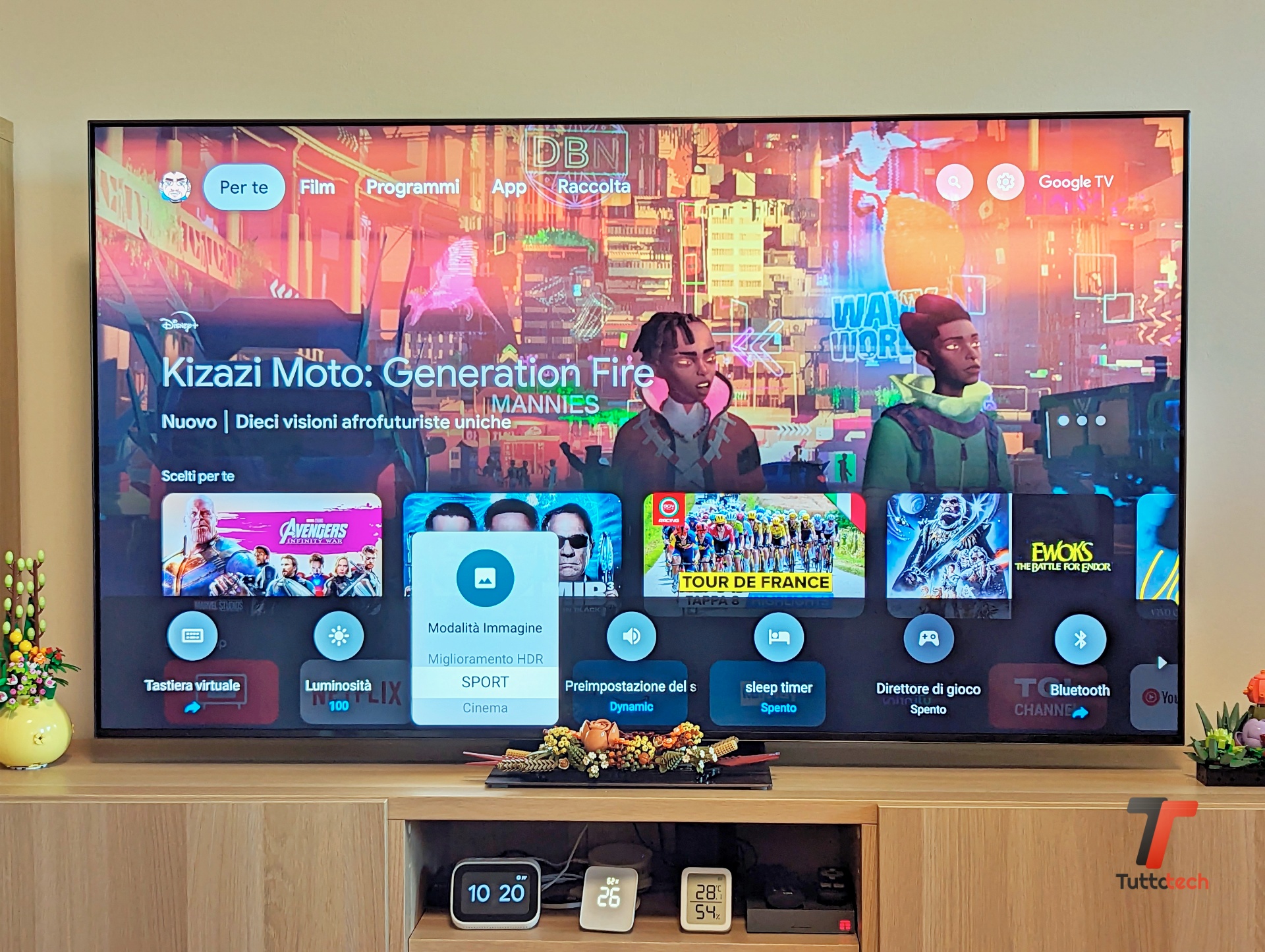 La presenza di Google TV è un plus da non sottovalutare, vi permette di avere tutti i servizi di streaming ma anche le applicazioni che utilizzate normalmente sullo smartphone, senza dover ricorrere al sistema Chromecast, che è comunque presente. Il telecomando con controllo vocale è molto comodo anche per gestire la smart home, a patto ovviamente di utilizzare Google Home, ma anche per cambiare canale, avviare servizi di streaming o guardare un video su YouTube, senza premere alcun tasto.