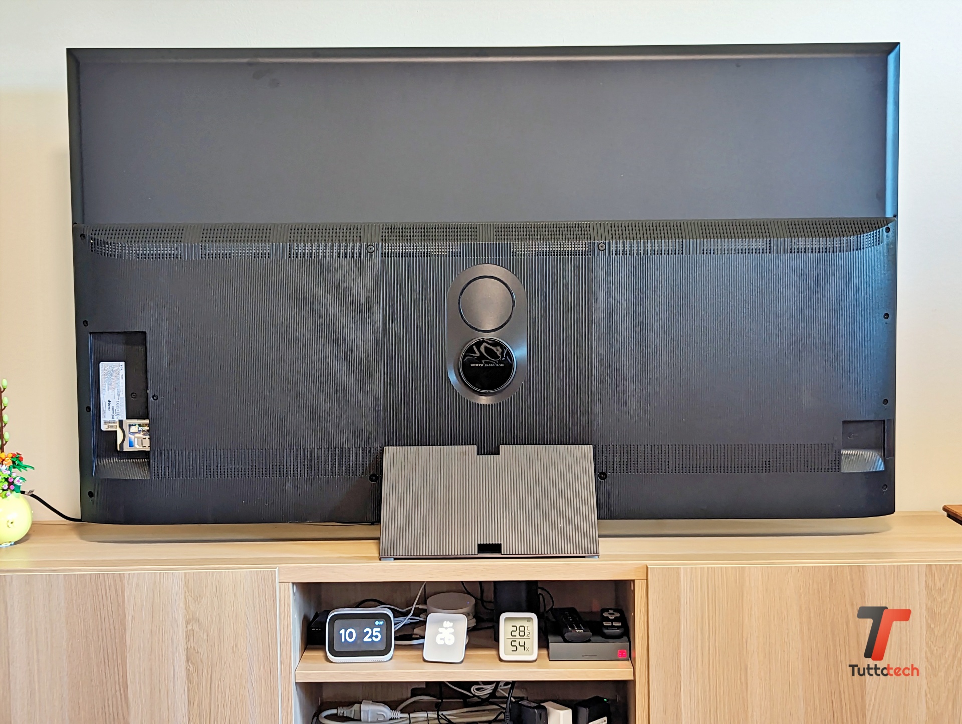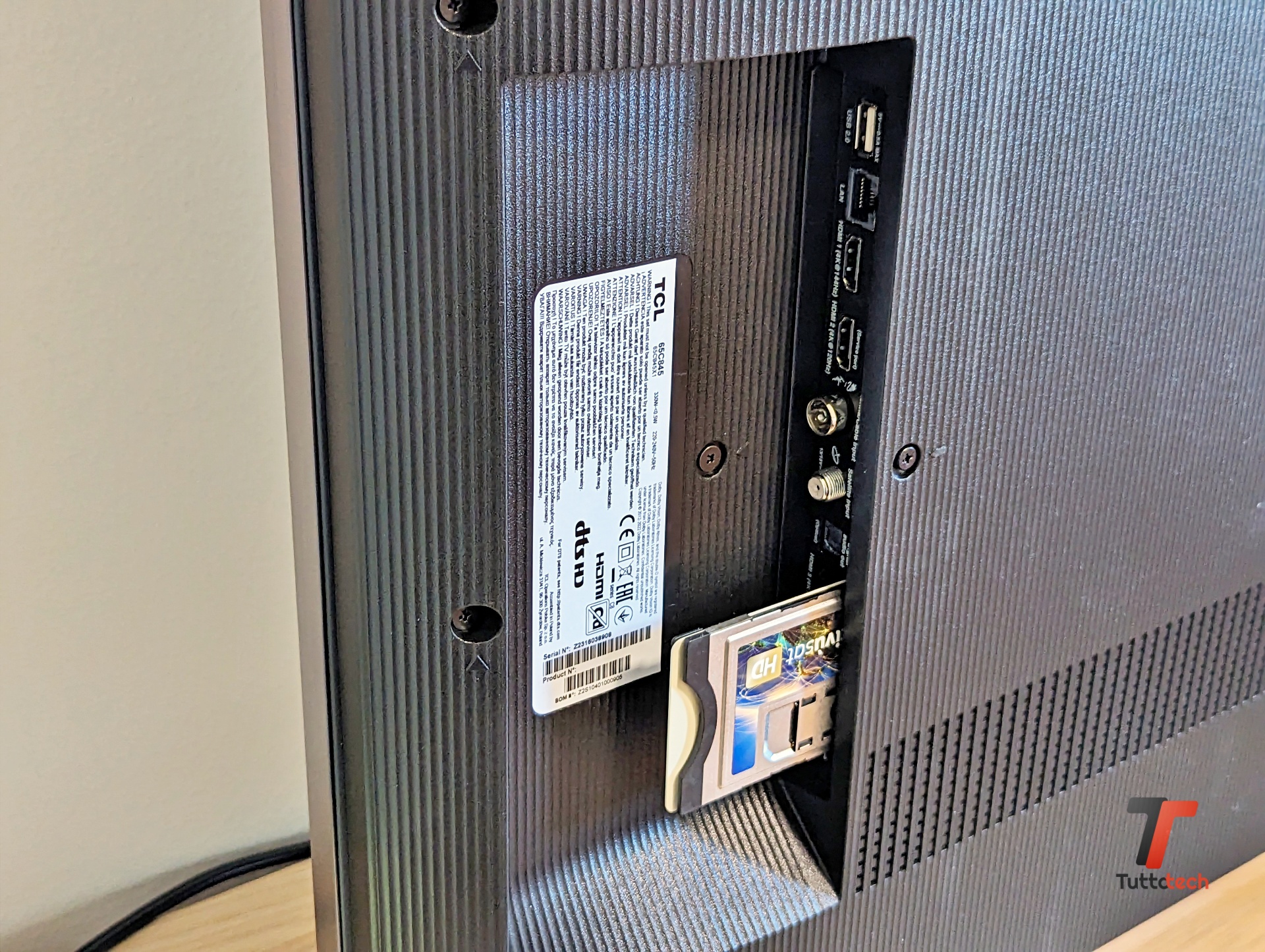 A completare la dotazione troviamo WiFi 802.11 ax, con supporto quindi alle bande a 2,4 e 5 GHz, RJ45 per il collegamento cablato alla rete, connettore ottico, connettore AV, connettore per antenna tradizionale e per antenna satellitare. È presente anche uno slot Common Interface, da utilizzare per poter visualizzare i servizi che richiedono una scheda di decodifica, come ad esempio tivùsat. A questo proposito va segnalata l’assenza della certificazione per tivùsat e tivùsat 4K. Questo non significa ovviamente che la scheda non funzioni, la sto utilizzando personalmente, ma che non potrete contare sulla numerazione automatica dei canali e che dovrete procedere, elenco alla mano a ordinarli manualmente. Niente di grave ovviamente, visto che si tratta di una procedura che difficilmente ripeterete dopo la configurazione iniziale.