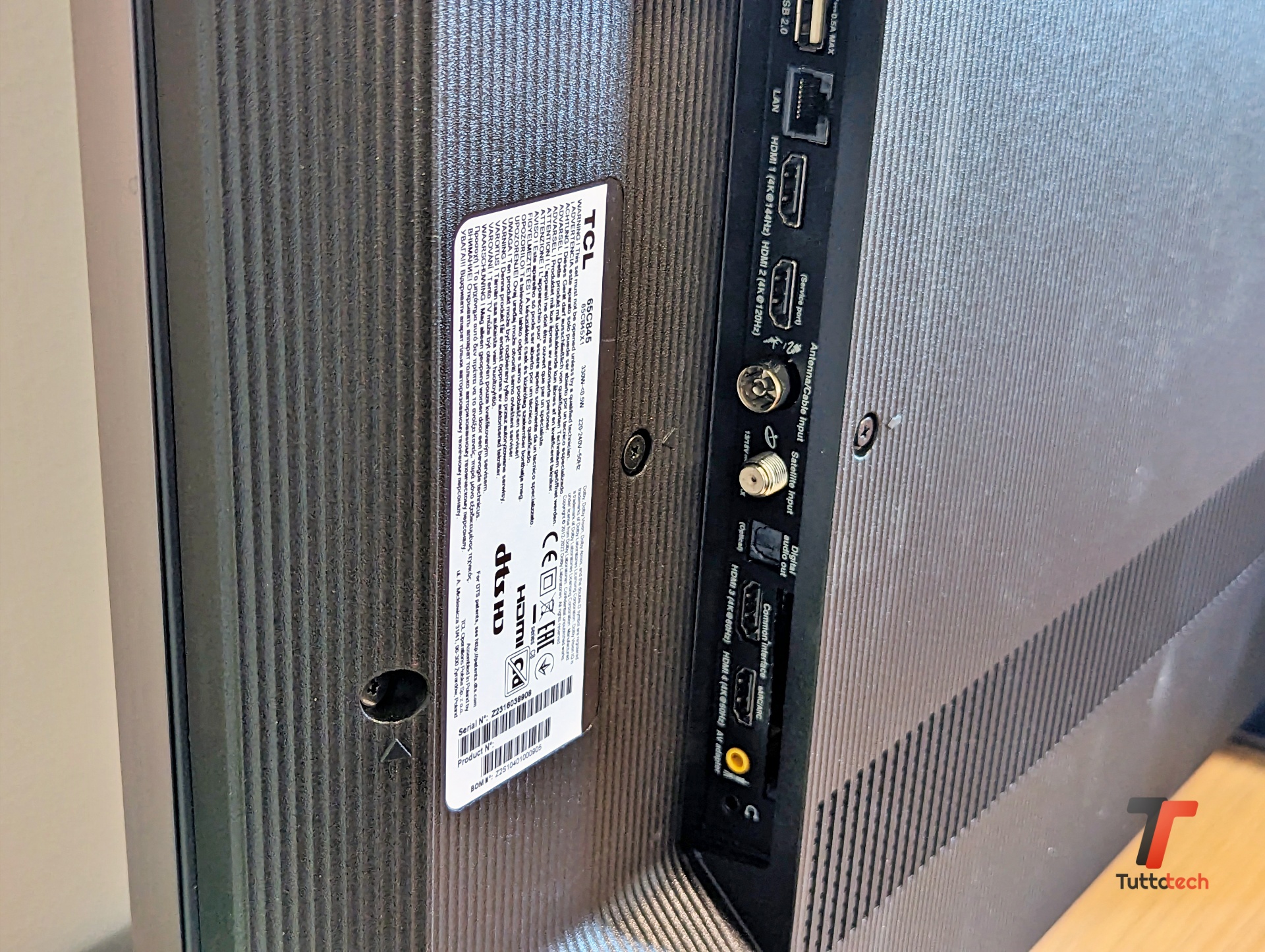 La connettività è un altro punto di forza di TCL 65C84, visto che ce n’è davvero per tutti i gusti. A essere sinceri mi sarei aspettato almeno una porta USB in più, visto che una sola, peraltro con lo standard 2.0, mi sembra poca. Volendo collegare un disco esterno, magari per guardare vecchie foto archiviate, e collegare un sistema di luci posteriore, è necessario rivolgersi a un alimentatore esterno, anche perché la porta eroga un massimo di 0,5A, sufficiente giusto per alimentare una chiavetta USB. È un limite da poco per molti ma a qualcuno la cosa potrebbe far storcere il naso.