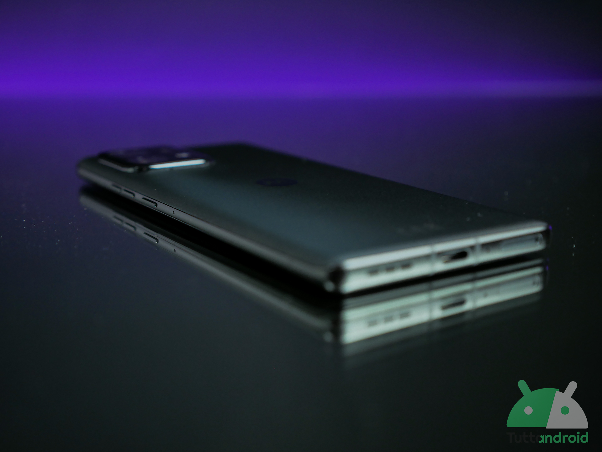 Motorola Edge 40 Pro, successore di fatto di Motorola Edge 30 Ultra ed Edge 30 Pro, esteticamente non è per niente banale: in mano è molto piacevole ma è molto scivoloso essendo tutte le superfici molto lisce. Il motivo è anche legato al fatto che ogni lato di questo smartphone è stondato: il display è stondato su tutti e 4 i lati, il retro è stondato e persino il modulo fotografico. Mossa audace in quanto nel mentre, il mercato, sta andando proprio nella direzione opposta con bordi squadrati e linee dure. A rendere il tutto sufficientemente gestibile anche con una sola mano comunque sono le misure e il peso: 161.2 x 74 x 8.6 mm e 199 grammi. Sia sul fronte che sul retro è in vetro con certificazione Gorilla Glass Victus ma il grosso passo in avanti è stato fatto nella qualità costruttiva raggiungendo la certificazione contro acqua e polvere IP68, cosa che ancora mancava nei modelli dello scorso anno.