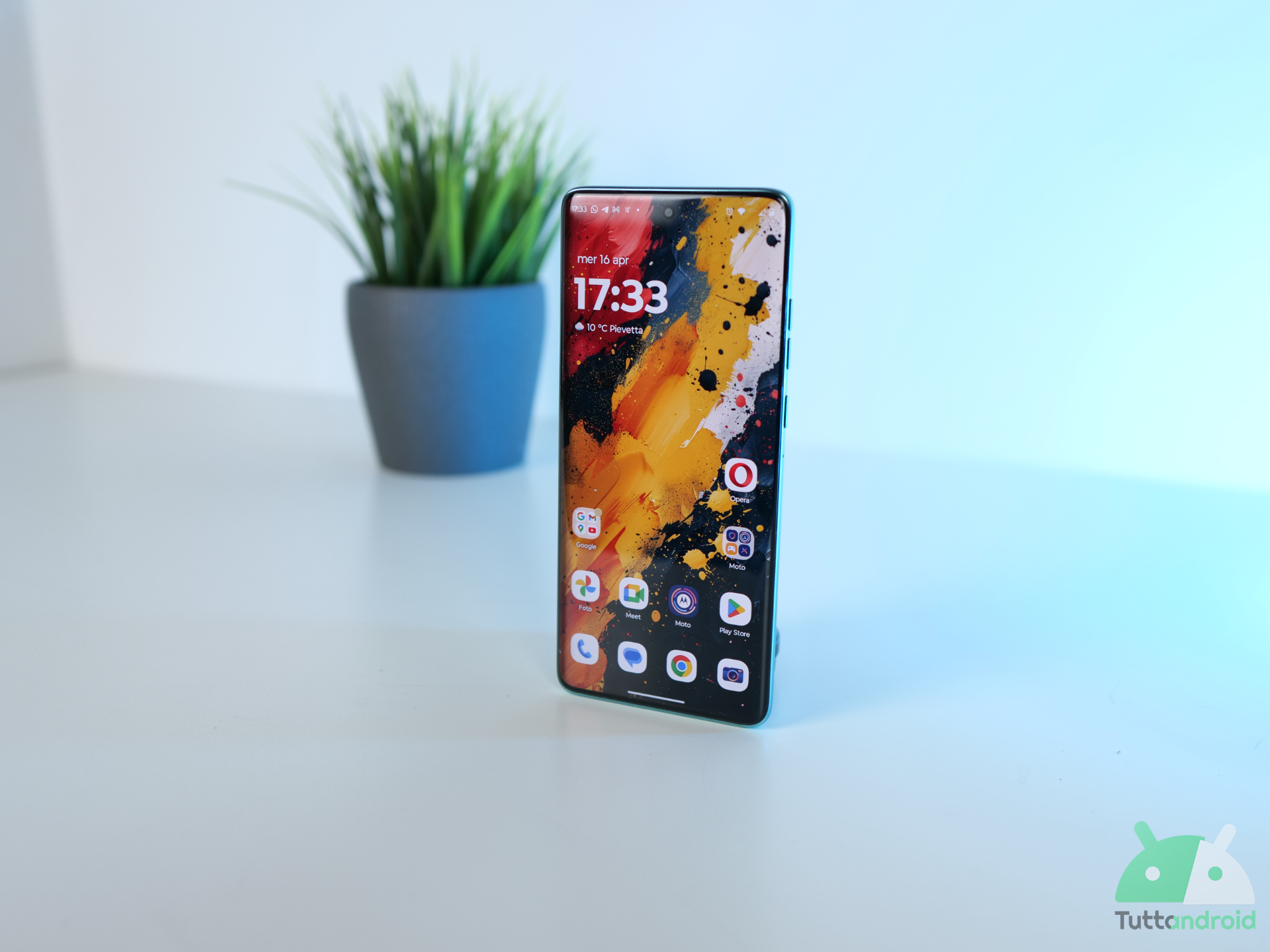 L’audio è stereo, non è ricchissimo di bassi ma potente ed è un’ottima notizia specialmente se dovete fare una chiamata in vivavoce. Lato software poi Motorola ha implementato la suite Dolby Atmos, con audio spaziale, oppure audio stereo automatico, ottimizzazione musica, cinema, gioco, podacast o personalizzata.