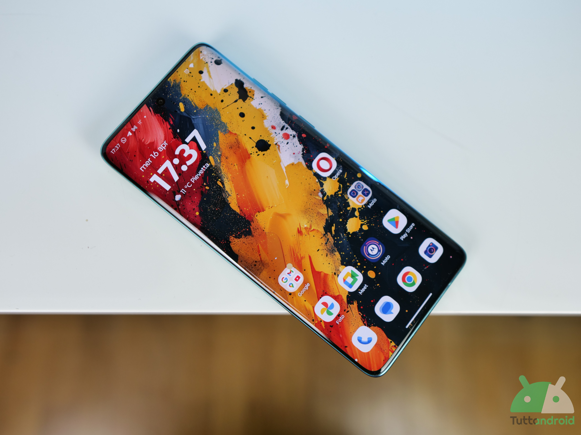 Altro elemento caratterizzante è il display curvo, che contribuisce a elevare ulteriormente la percezione premium del dispositivo. È vero, i bordi curvi portano con sé qualche compromesso — come i riflessi laterali o i tocchi involontari — ma sul piano estetico regalano un impatto scenografico notevole. Il pannello è un pOLED da 6,67 pollici, 120 Hz di refresh rate e luminosità di picco di 4500 nits, supporto HDR10+ (assente nella generazione precedente) e una resa visiva decisamente sopra la media. L’immersione visiva è eccellente e la qualità complessiva del display lo colloca tra i migliori della sua categoria. Include anche la tecnologia Water Touch, che aumenta la sensibilità dello schermo quando serve per far sì che rimanga reattivo anche quando bagnato.