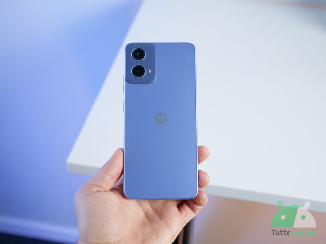 Anche il software gioca un ruolo importante: il dispositivo è equipaggiato con Android 14 con interfaccia Motorola nota per la sua semplicità. Non è esente da bloatware, ovvero applicazioni pre-installate di poca utilità, ma non è particolarmente invasivo. Come dicevamo il sistema è pulito e personalizzabile, e include le app Moto Secure, Moto Connect e Moto Unplugged per un controllo maggiore e un’esperienza utente più fluida. È possibile infatti cambiare carattere del testo, colori, e attivare o disattivare eventuali gesture come ad esempio lo shake dello smartphone per avviare rapidamente la fotocamera.