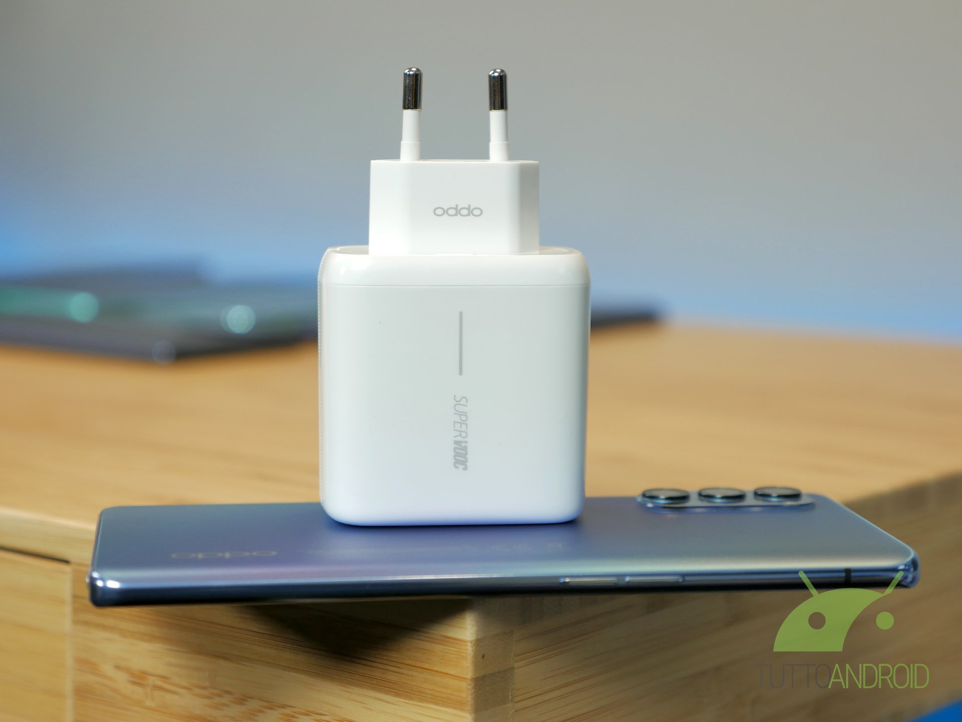 Dopo la fotocamera un altro aspetto su cui punta OPPO è la batteria. In realtà non gridiamo esattamente al miracolo lato autonomia: circa 5 ore di display attivo con uso medio, intenso a tratti con refresh rate automatico e always-on attivi. Può però contare su una velocità in ricarica SuperVOOC 2.0 da 65 W super rapida, la stessa rapidità vista pochi giorni fa nella recensione di Realme 7 Pro.