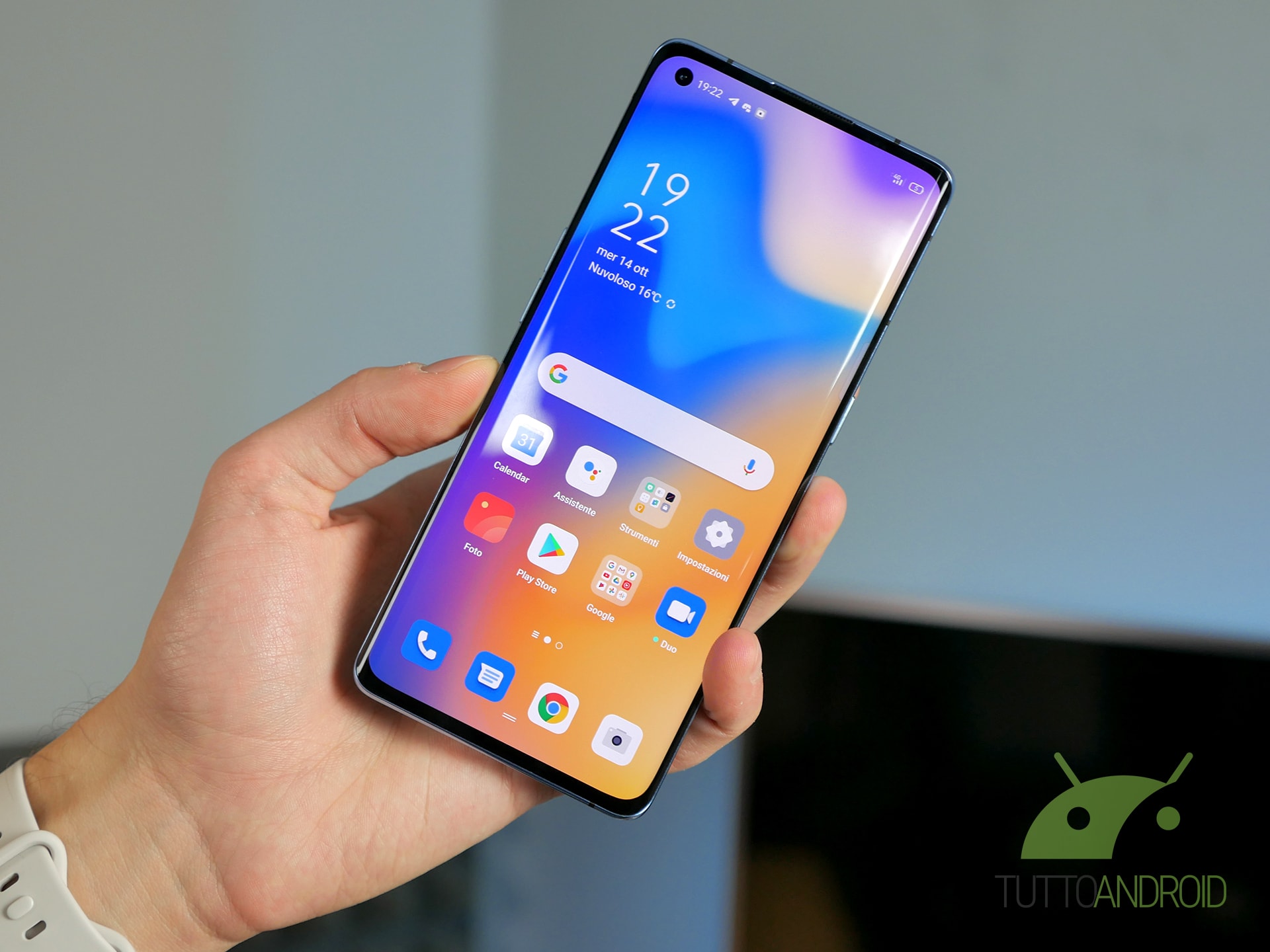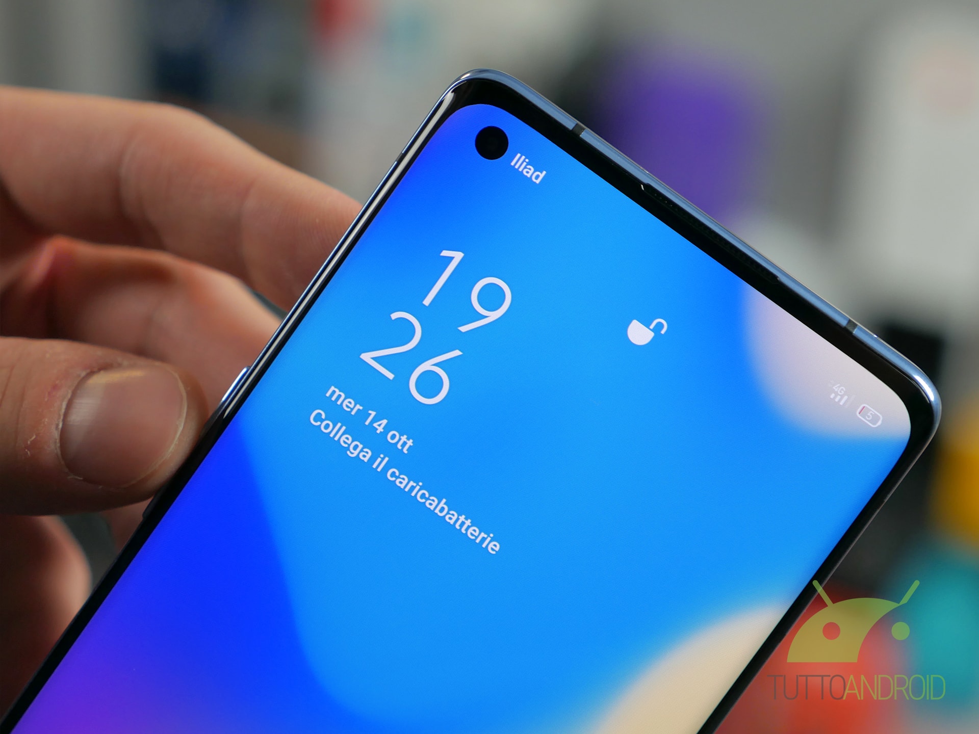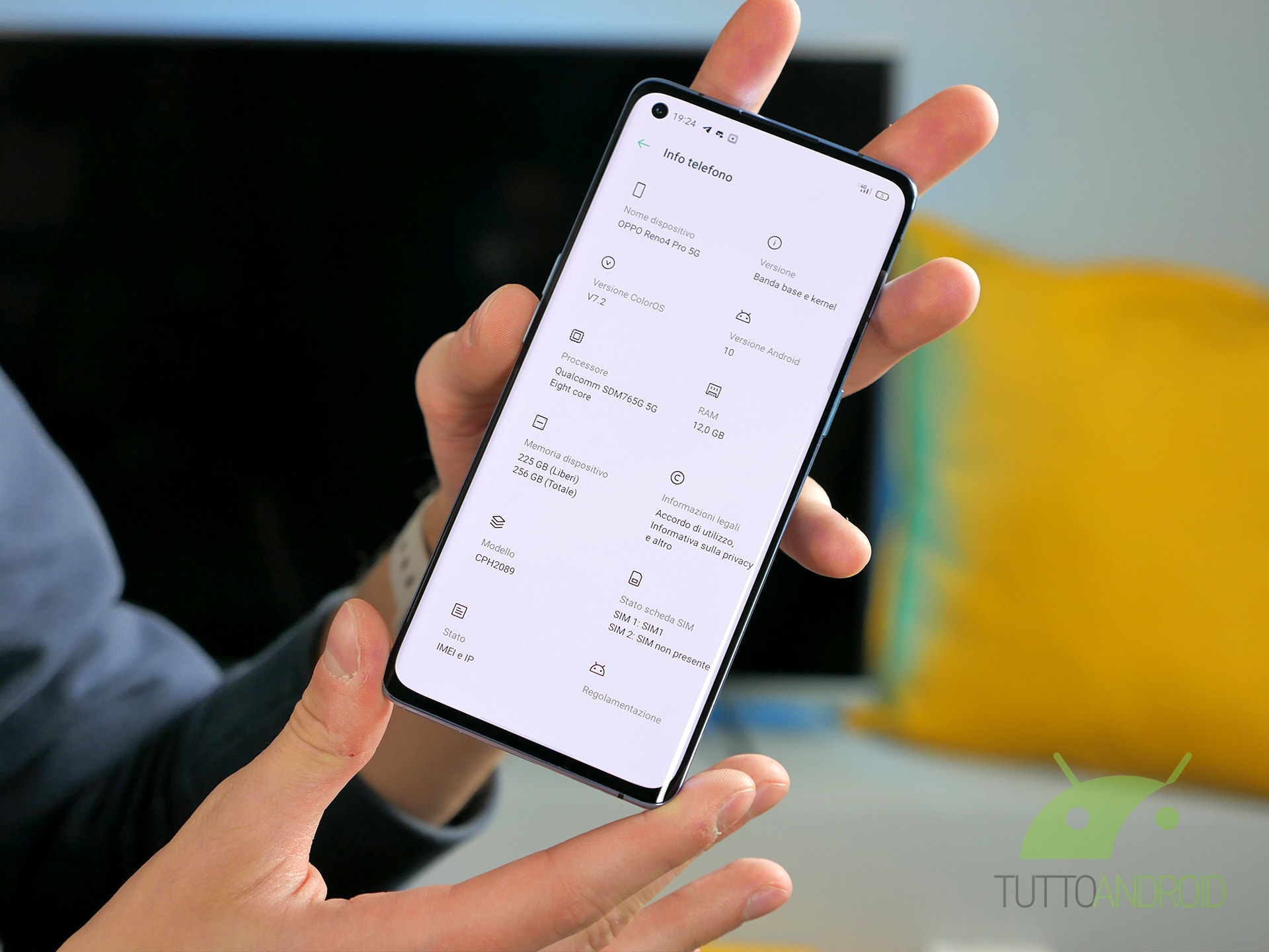 Il pannello è curvo 3D ai lati e con tanto di dotch di tipo AMOLED da 6,5″ FHD+ con supporto 90 Hz e HDR10+. Eccellenti la luminosità e la definizione ma lo stesso non diremmo per la taratura colore default: quasi mai ci siamo ritrovati tra le mani device OPPO con display calibrati veramente come si deve e qui nessuna eccezione; un qualcosa tuttavia di risolvibile dalle impostazioni, noi abbiamo ingiallito maggiormente lo schermo.