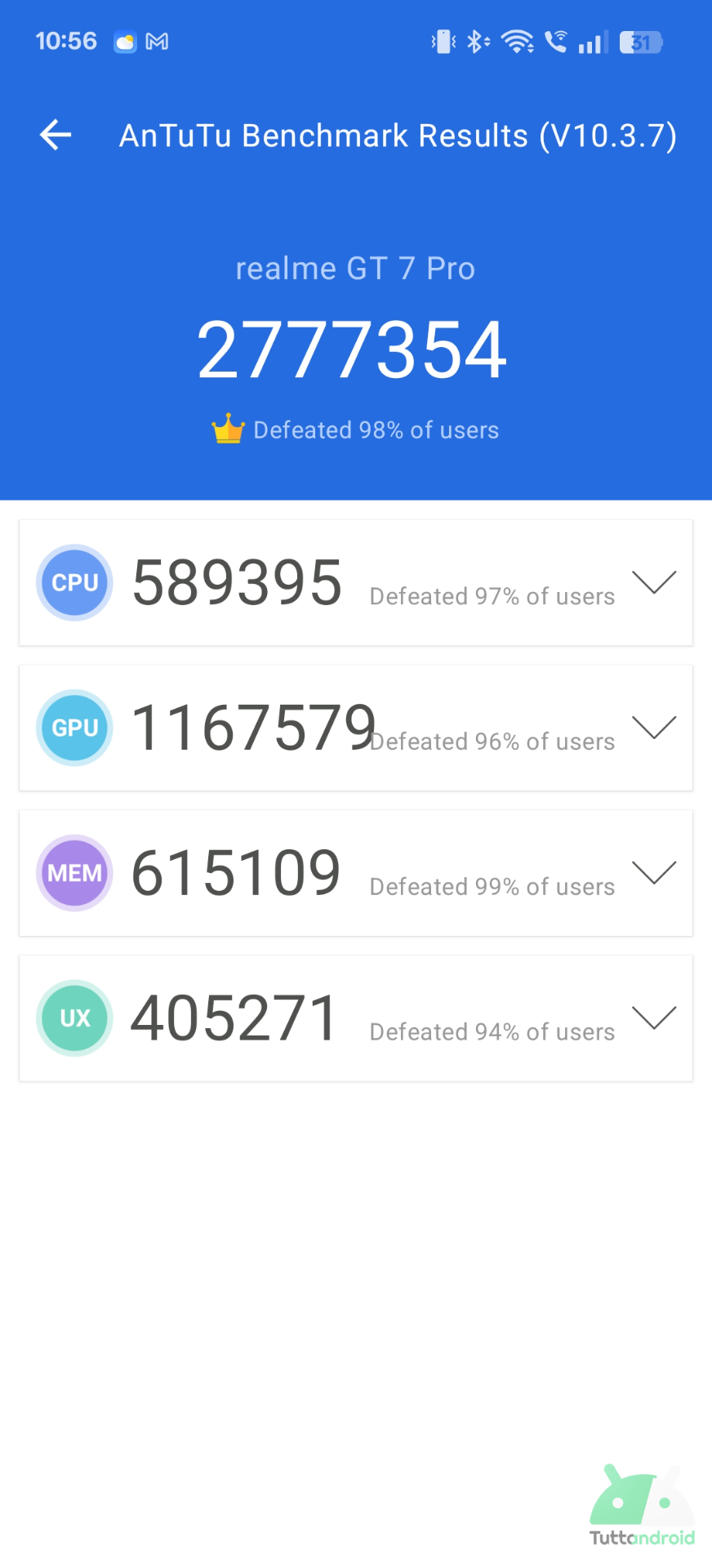 Come va? Nell’utilizzo di ogni giorno lo Snapdragon 8 Elite si fa apprezzare più che altro per il risparmio energetico, consuma niente in IDLE, consuma pochissimo a basso carico, consuma poco a medio carico. Non che le performance siano deludenti, ma che Realme GT 7 Pro sia un fulmine lo davamo quasi per scontato, d’altra parte era così anche per i top di gamma della scorsa generazione con il Gen 3.