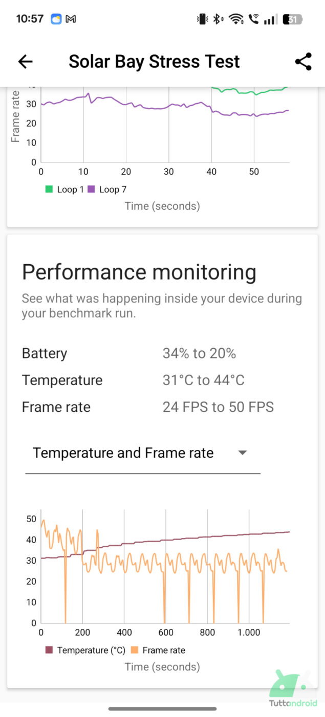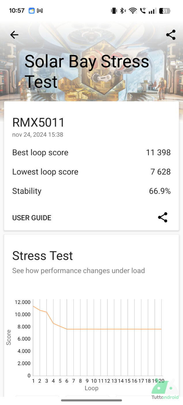 In tutto ciò, a scanso di equivoci, Realme GT 7 Pro è velocissimo, non scalda ed è affidabile nell’utilizzo di tutti i giorni. Nelle ultime settimane sono arrivati diversi aggiornamenti che hanno sistemato anche una tendenza al surriscaldamento in gaming, per cui nessun problema a 360 gradi. Per vedere veramente in crisi la gestione termica bisogna volutamente mettere sotto stress il sistema con i benchmark più complessi.