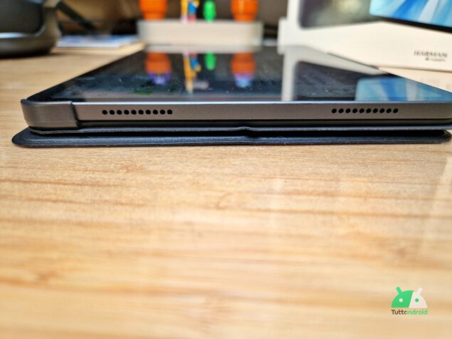 Il posizionamento degli speaker è davvero perfetto, utilizzando il tablet in modalità landscape, così da consentire di percepire la stereofonia in maniera davvero precisa, nonostante la distanza tra i due lati dello schermo non sia poi così elevata. Un plauso quindi per la scelta di una soluzione di qualità, che raramente si vede in questa fascia di prezzo.