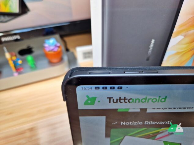 L’unica pecca è legata all’utilizzo di Android 13, sul quale gira l’interfaccia personalizzata DokeOS_P 4.0, che oltre alle applicazioni classiche (inclusi i servizi Google) aggiunge qualche applicazione pensata per lo studio e il lavoro. Nella confezione di vendita, oltre al carica batterie, al cavo USB e a un paio di cuffie cablate (di tipo USB-C) troviamo anche una cover in plastica morbida, con una finitura particolare che ricorda la pelle e che conferisce un aspetto pregiato al tutto.