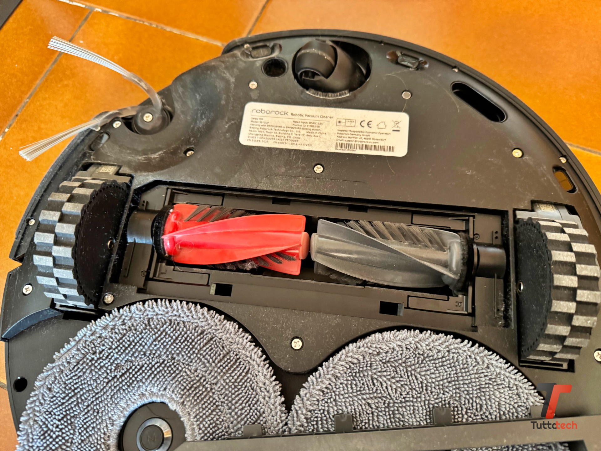 Leggermente meno soddisfacente il lavaggio del pavimento, visto che con le stesse impostazioni di intensità e livello di acqua, è rimasta qualche piccola traccia sul pavimento, che ha richiesto una seconda pulizia per essere rimossa fino in fondo. Si trattava comunque di macchie decisamente ostinate, con quelle più leggere non abbiamo osservato problemi di sorta. Anche in questo caso Roborock ha utilizzato un sistema di montaggio automatico dei panni, che vengono fissati sotto al robot solamente quando serve, e che vengono rialzati nei trasferimenti tra le stanze, nel ritorno alla base e nel passaggio sopra ai tappeti.