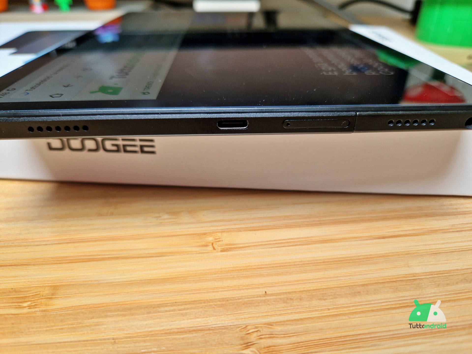Nonostante un prezzo contenuto, che potrebbe far pensare a soluzioni economiche, questo DOOGEE T30S ci ha sorpreso in positivo, a partire da un design decisamente curato. È realizzato in metallo, con la sola eccezione della parte alta della cover posteriore, dove sono posizionate le antenne, per garantire una migliore ricezione. Lo spessore di appena 7,6 millimetri, unito al peso di 506 grammi, lo rende molto maneggevole e nonostante l’assenza di una cover protettiva, il tablet si tiene bene in mano e non ha la tendenza a scivolare.