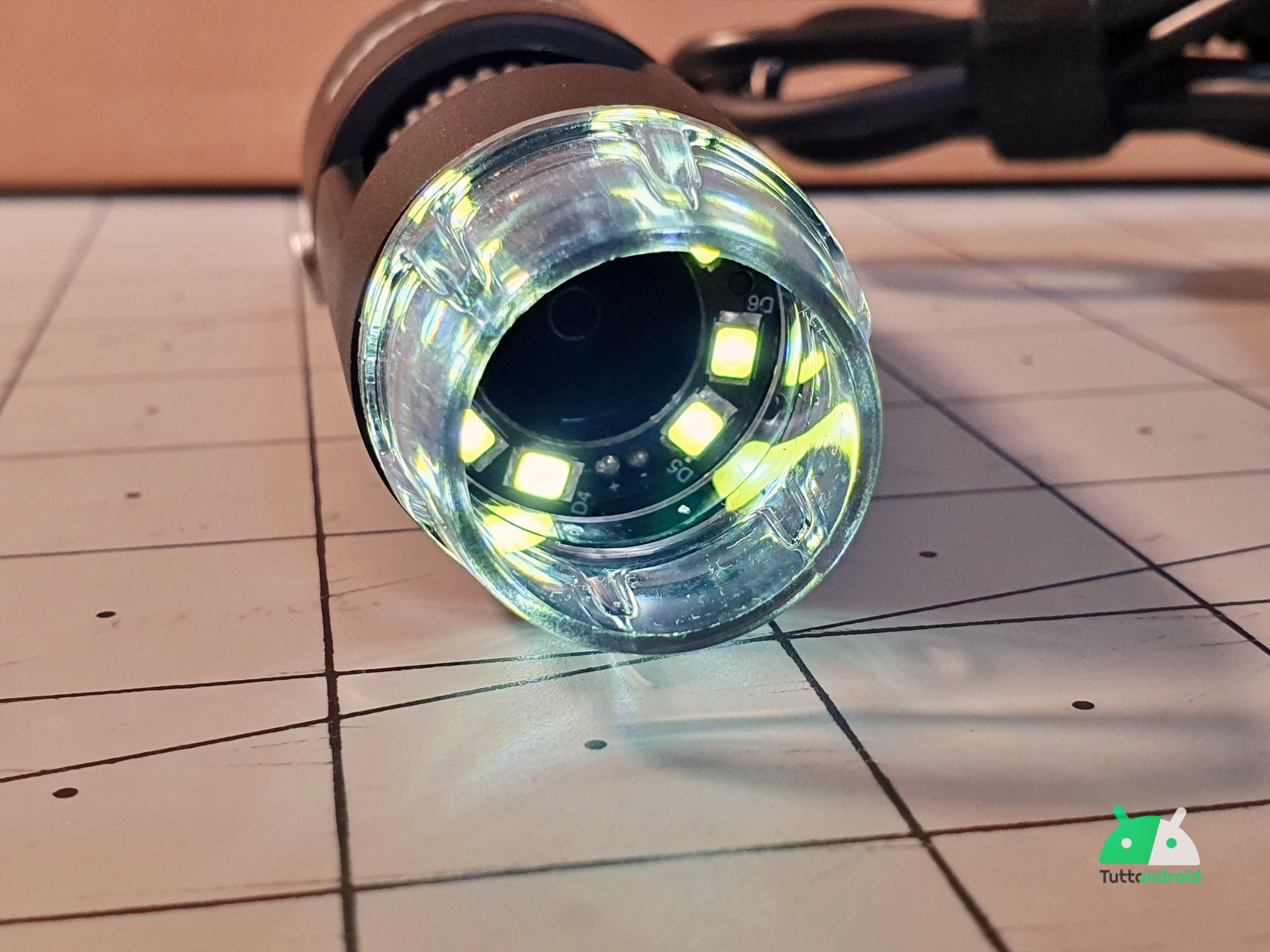 Lo zoom dell’accessorio esterno può andare da 50X a 1000X, utilizzando un cursore posto sulla telecamerina esterna, e grazie a un secondo controller è possibile aumentare o diminuire l’illuminazione. Personalmente ho visto utilizzare questa soluzione anche da una parrucchiera, per conoscere lo stato di salute del cuoio capelluto, ma anche in questo caso le applicazioni possono essere molteplici.