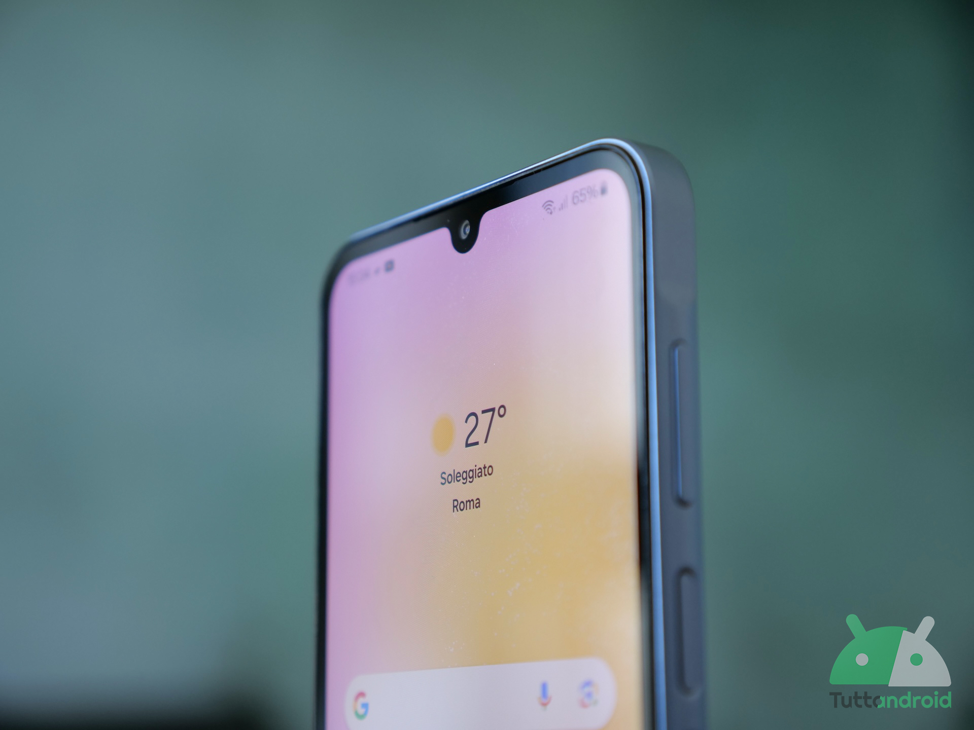 La versione di Android con cui Galaxy A25 esce di fabbrica è la 14, con personalizzazione OneUI 6.0. Samsung garantisce 4 anni di aggiornamenti del sistema operativo e 5 anni per le patch di sicurezza.