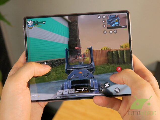 Aprendolo invece si sfrutta in tutta la sua grandezza il Dynamic AMOLED da 7,6″ che è, senza giri di parole, il miglior pannello mai visto su un pieghevole, adesso pure lui con punch hole e, ad essere sinceri, temevamo in prima battuta che potesse risultare ingombrane, in realtà spesso e volentieri passa inosservato e non ci si accorge nemmeno della sua presenza.