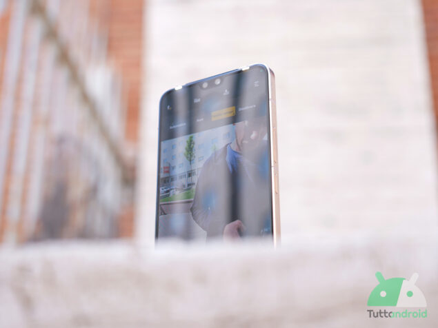 Le cornici attorno allo schermo sono sufficientemente ottimizzate con l’unica eccezione del notch centrale che ingloba la capsula auricolare, due sensori fotografici e ben 4 flash led per selfie sempre luminosi.