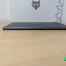 Le cornici sono ben visibili ma non così esagerate come su altri modelli in questa fascia di prezzo e permettono di alloggiare la fotocamera frontale senza dover ricorrere a notch o fori nello schermo, una soluzione ancora poco utilizzata sui tablet. La cover posteriore è per la maggior parte metallica, ma nella parte alta troviamo un inserto in plastica, che migliora la ricezione del segnale cellulare.