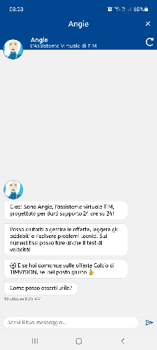 • Chiedi ad Angie: avvia una chat con l’assistente virtuale TIM.