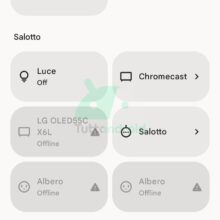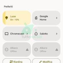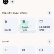 - Dispositivi: schermata simile a quella dei preferiti, ma con tutti i dispositivi della smart home collegati e suddivisi nelle varie stanze (se configurate); il pulsante “Aggiungi” permette di accedere a una procedura guidata per aggiungere un nuovo dispositivo smart, tra quelli compatibili con Matter, quelli della gamma Nest o dei partner.