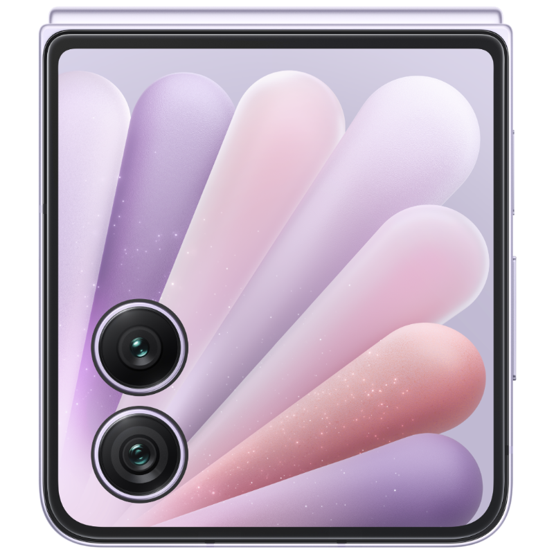 Lo smartphone propone un formato a conchiglia con doppio schermo, uno interno e uno esterno: il primo è pieghevole, mentre il secondo è posizionato nella “metà” superiore e sfrutta quasi tutto lo spazio a disposizione, andando a circondare anche i due obiettivi fotografici. Il flash LED è invece nella metà inferiore, dopo trova posto la texture a onde sulle colorazioni Bianco e Viola. Il dispositivo offre una cerniera in lega di titanio di livello aerospaziale ed è certificato SGS Premium per la resistenza alle cadute. Non mancano le certificazioni IP58 e IP59.