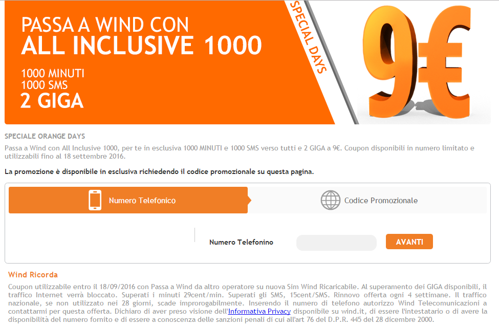 All Inclusive 1000 è attivabile solo utilizzando il codice ottenuto inserendo il proprio numero di telefono, ma occorre affrettarsi perché i coupon sono in numero limitato. Basterà quest’offerta a convincervi a passare a Wind?