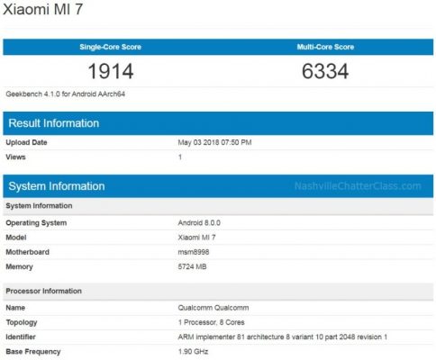 In attesa della sua presentazione ufficiale, Xiaomi Mi 7 continua ad essere il protagonista di apparizioni in Rete e l’ultima in ordine di tempo è quella relativa al database di Geekbench.