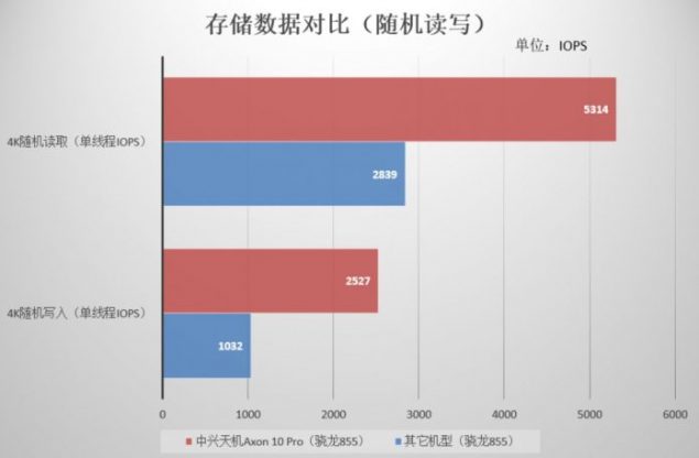 Oggi ne abbiamo un esempio lampante: le due immagini qui sopra rappresentano la velocità della memoria di massa di ZTE Axon 10 Pro 5G, sia quelle sequenziali che le IOPS, ovvero il numero di operazioni che può compiere ogni secondo. I valori dello smartphone vengono confrontati con quelli medi della stessa categoria ed anche senza leggere i numeri si vede come Axon 10 Pro 5G sia miglia avanti rispetto agli altri.